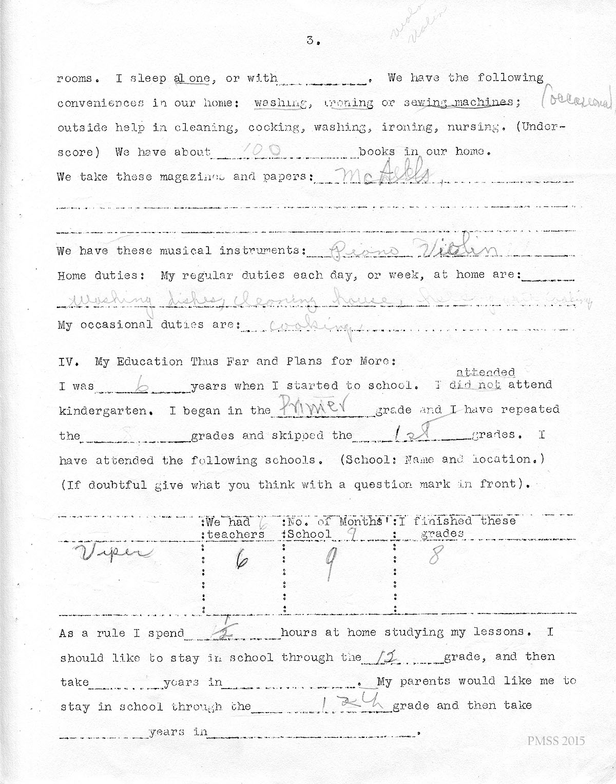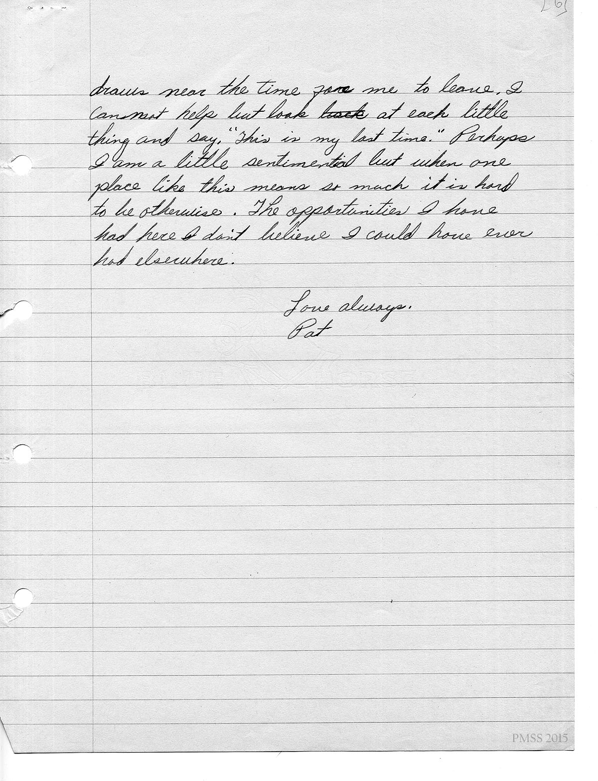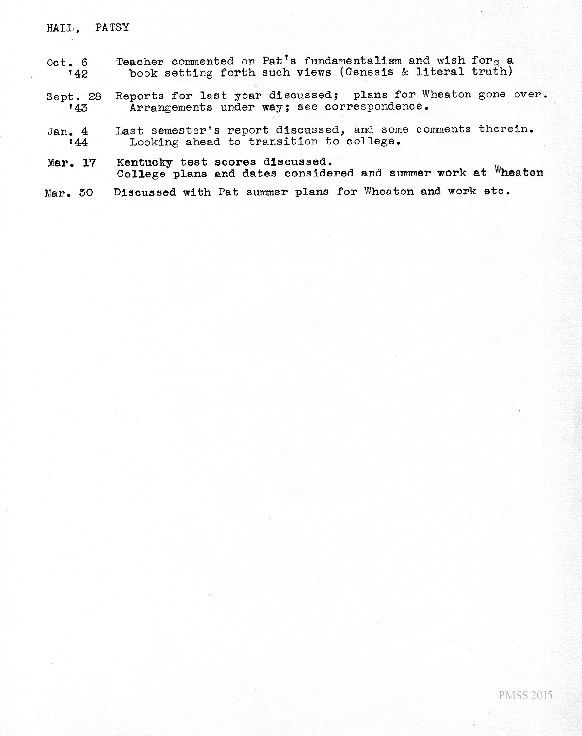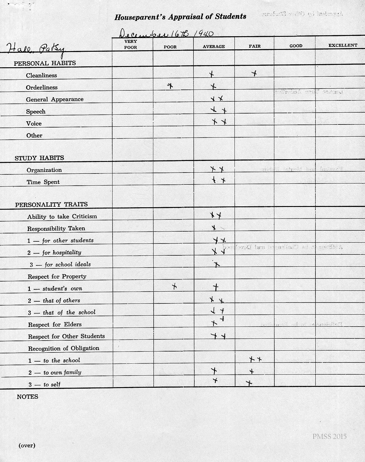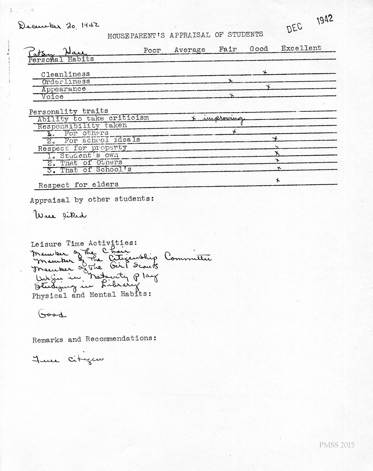 As in many of the student biographies, some of Patsy’s academic records (testing, for example) have not been included in the Correspondence page in order to retain privacy. Flora Patsy Hall is now in her early 90’s and has given permission to publish most of her school record and correspondence in this online archive of student records and the additional correspondence that the record produced.