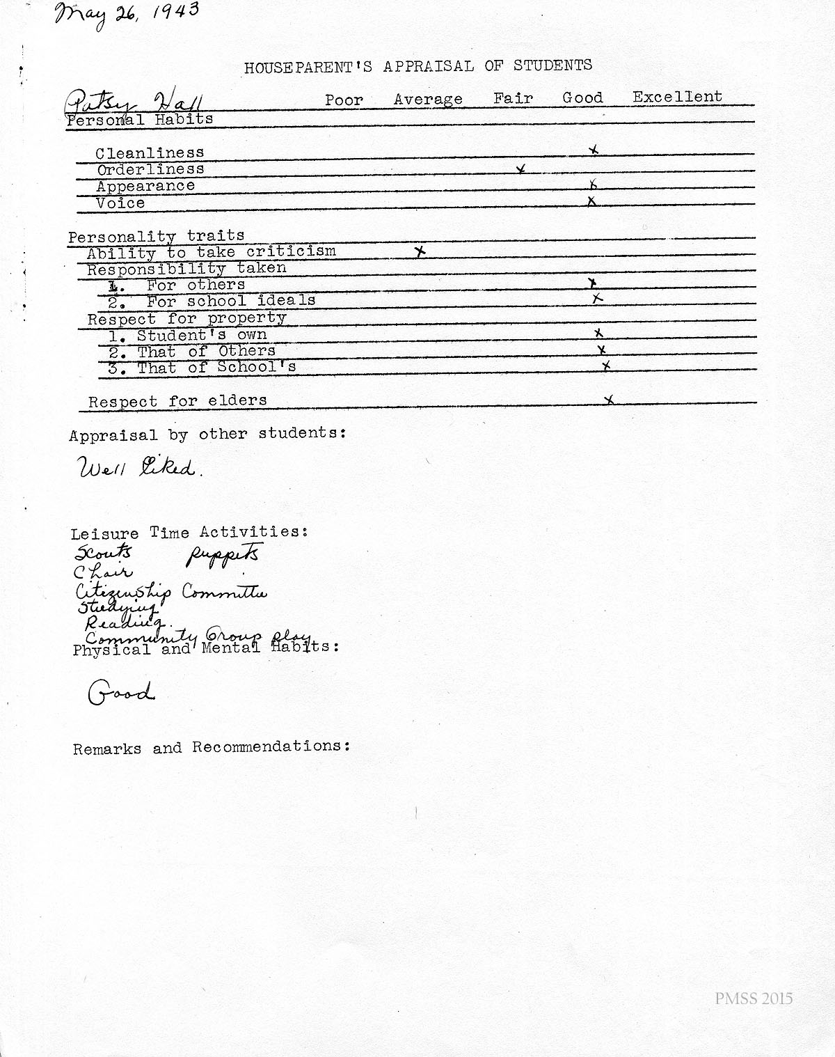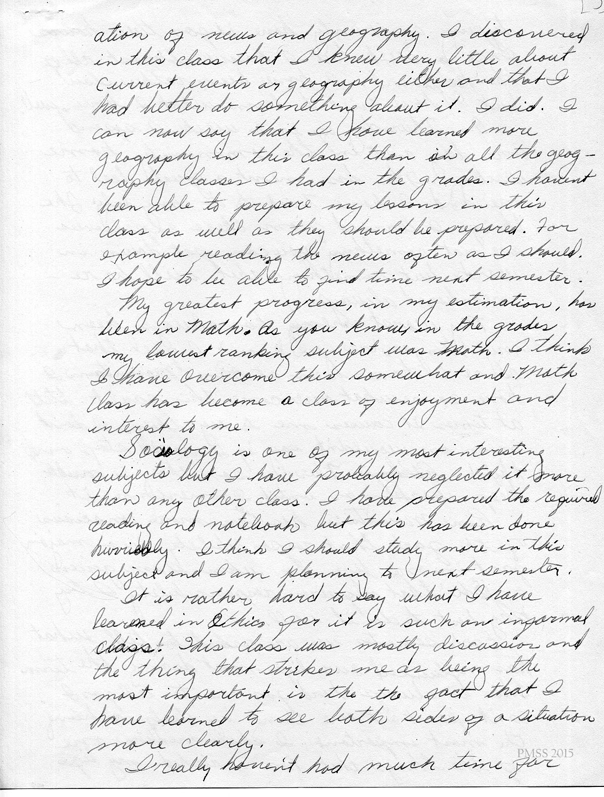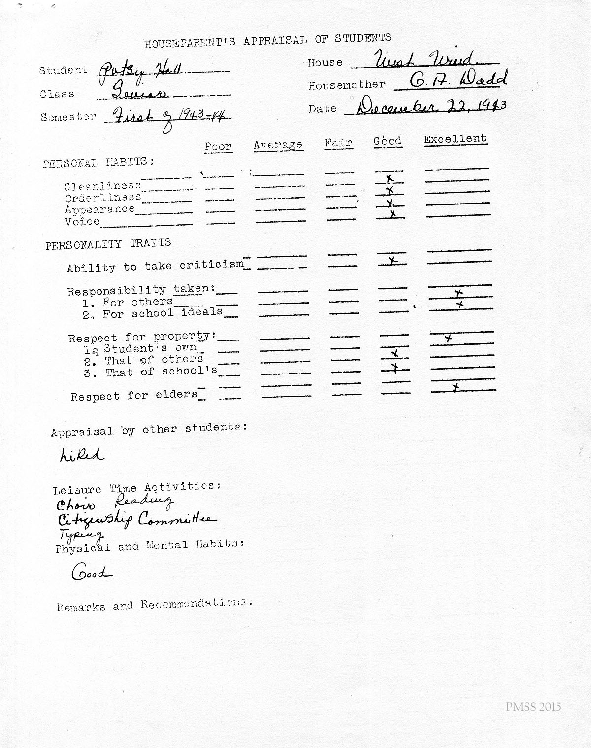In the later years of the Boarding School, Glyn Morris and his staff became more and more intent on documenting the progress of students. One reason was Morris’ belief that these records were critical to the educational progress of the student. But, the other important reason was that students were not graded in the standard manner and in order for records to transfer for additional educational purposes, the “in-house” record keeping had to be comprehensive to satisfy the transfer of credits.