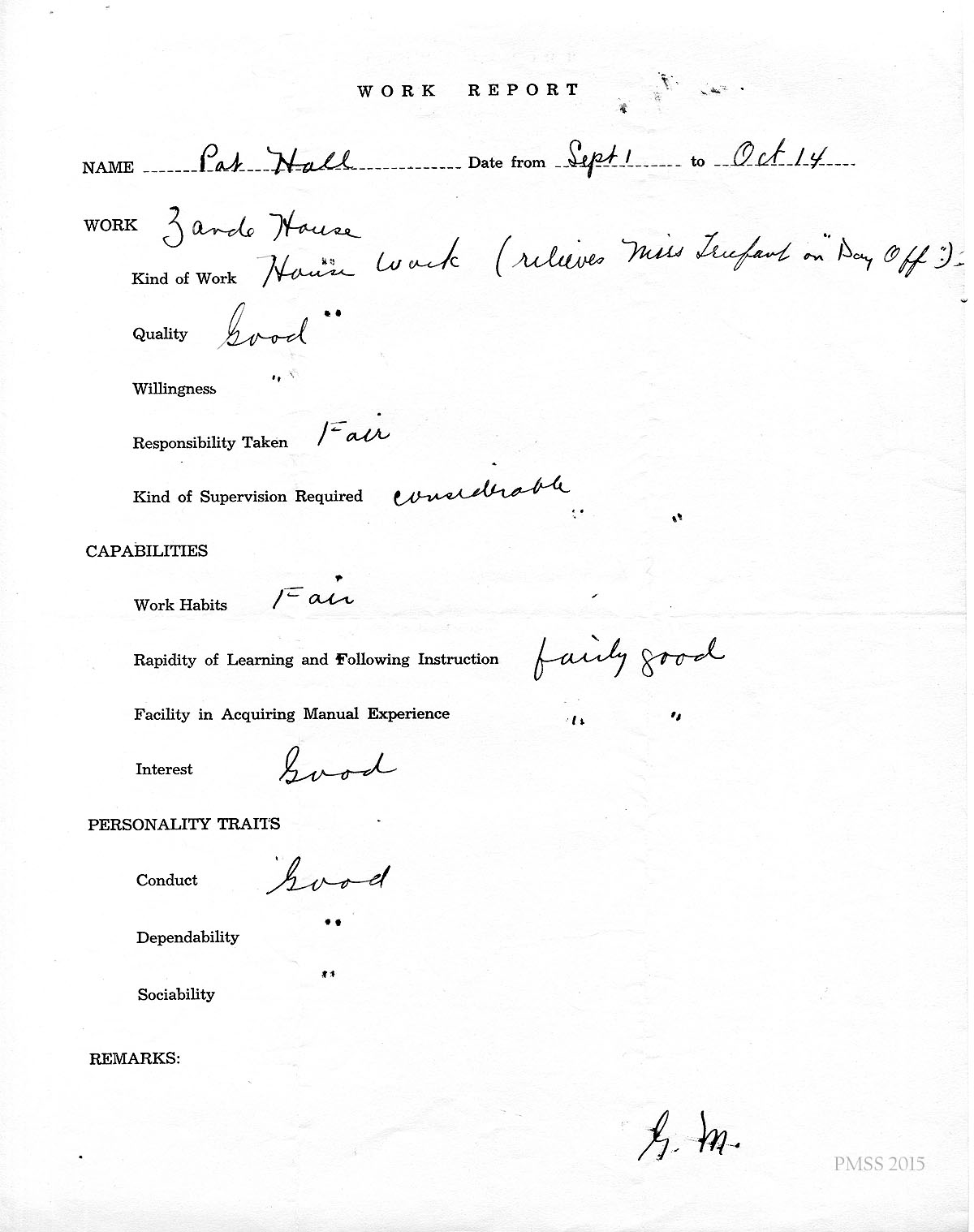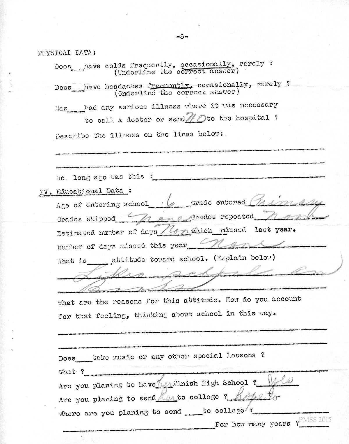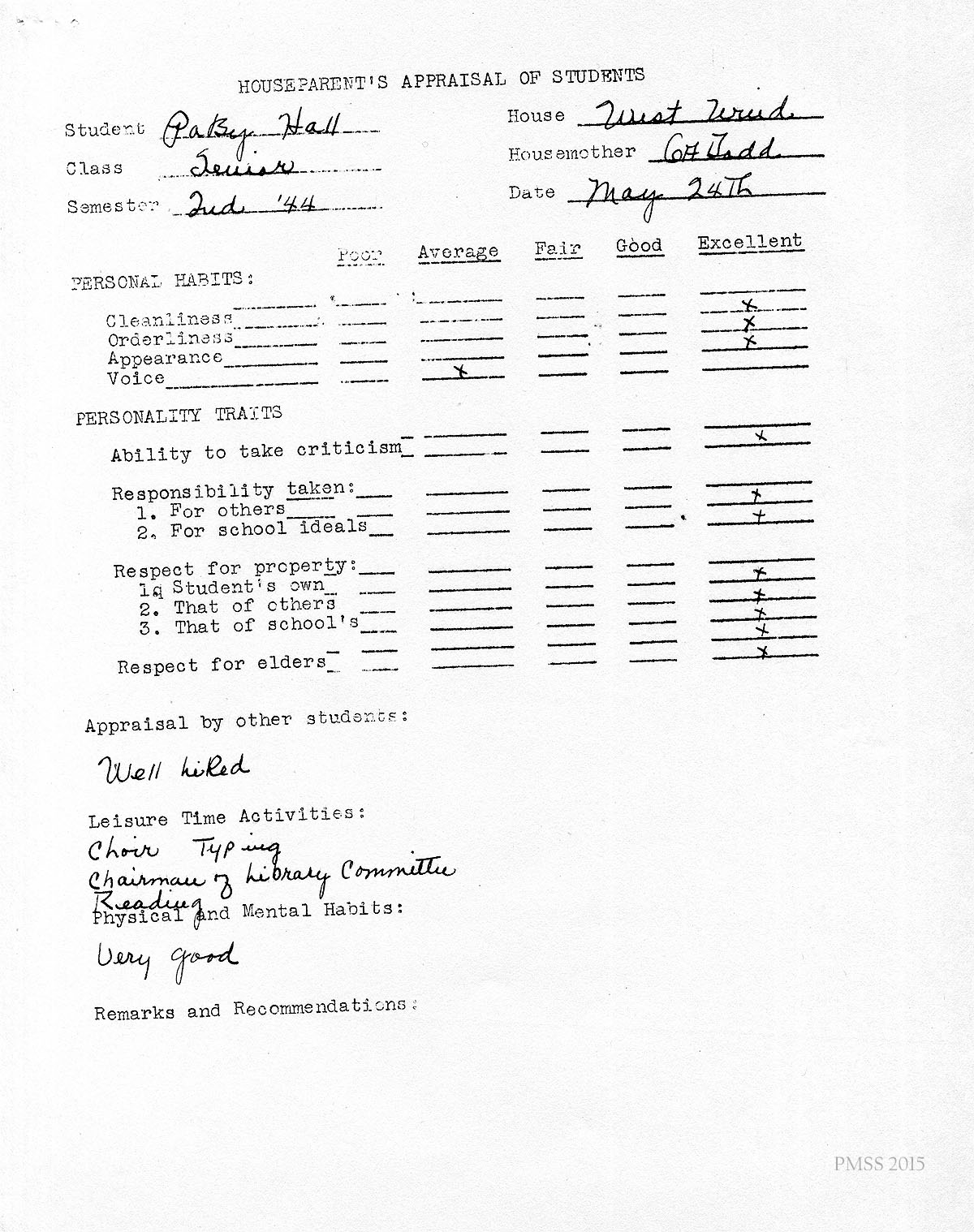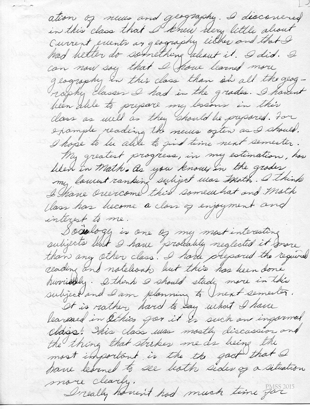In the later years of the Boarding School, Glyn Morris and his staff became more and more intent on documenting the progress of students. One reason was Morris’ belief that these records were critical to the educational progress of the student. But, the other important reason was that students were not graded in the standard manner and in order for records to transfer for additional educational purposes, the “in-house” record keeping had to be comprehensive to satisfy the transfer of credits.
