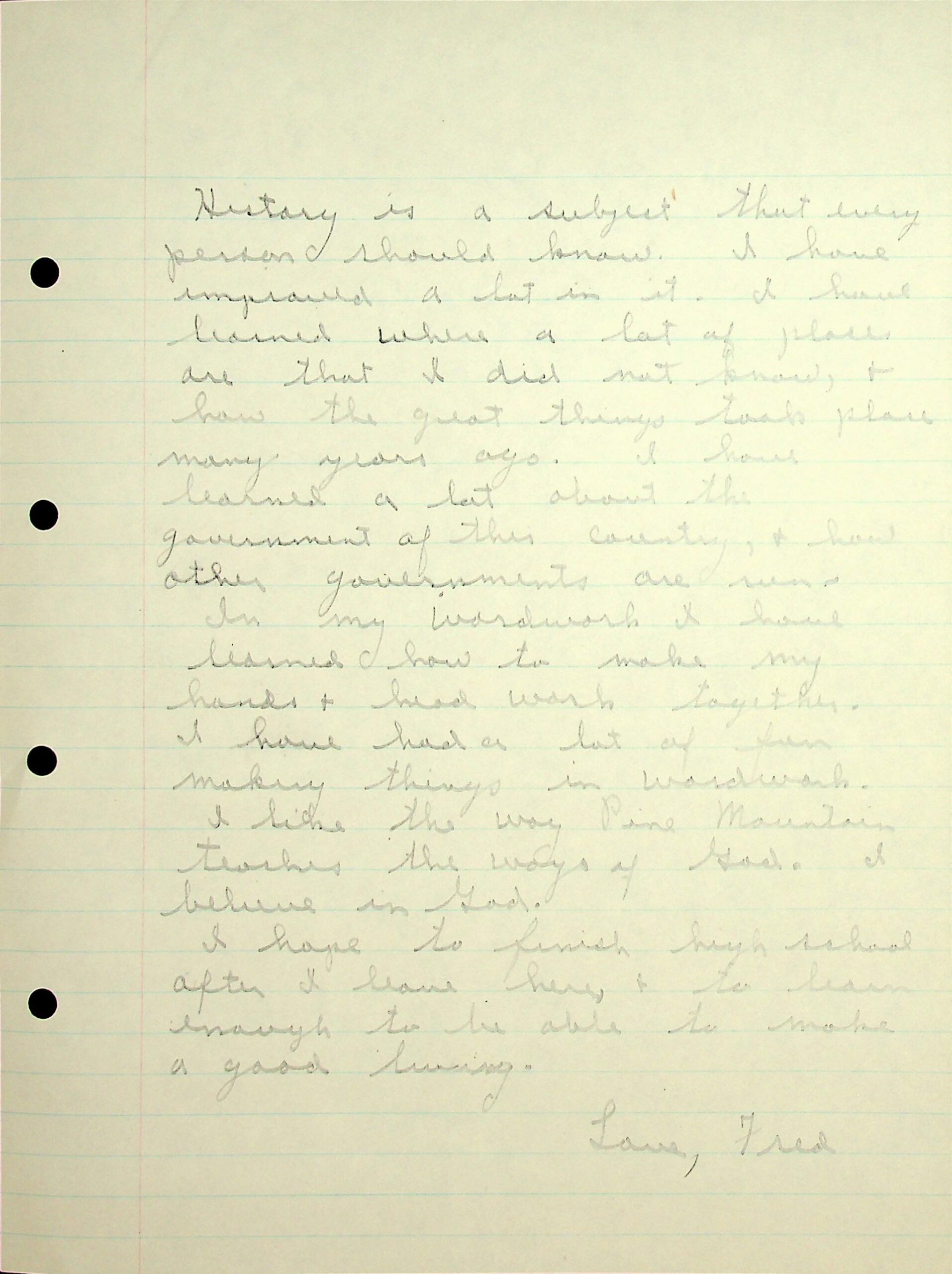 14 (Page 3) history (government); woodworking. “I hope to finish high school after I leave here, & to learn enough to be able to make a good living.”