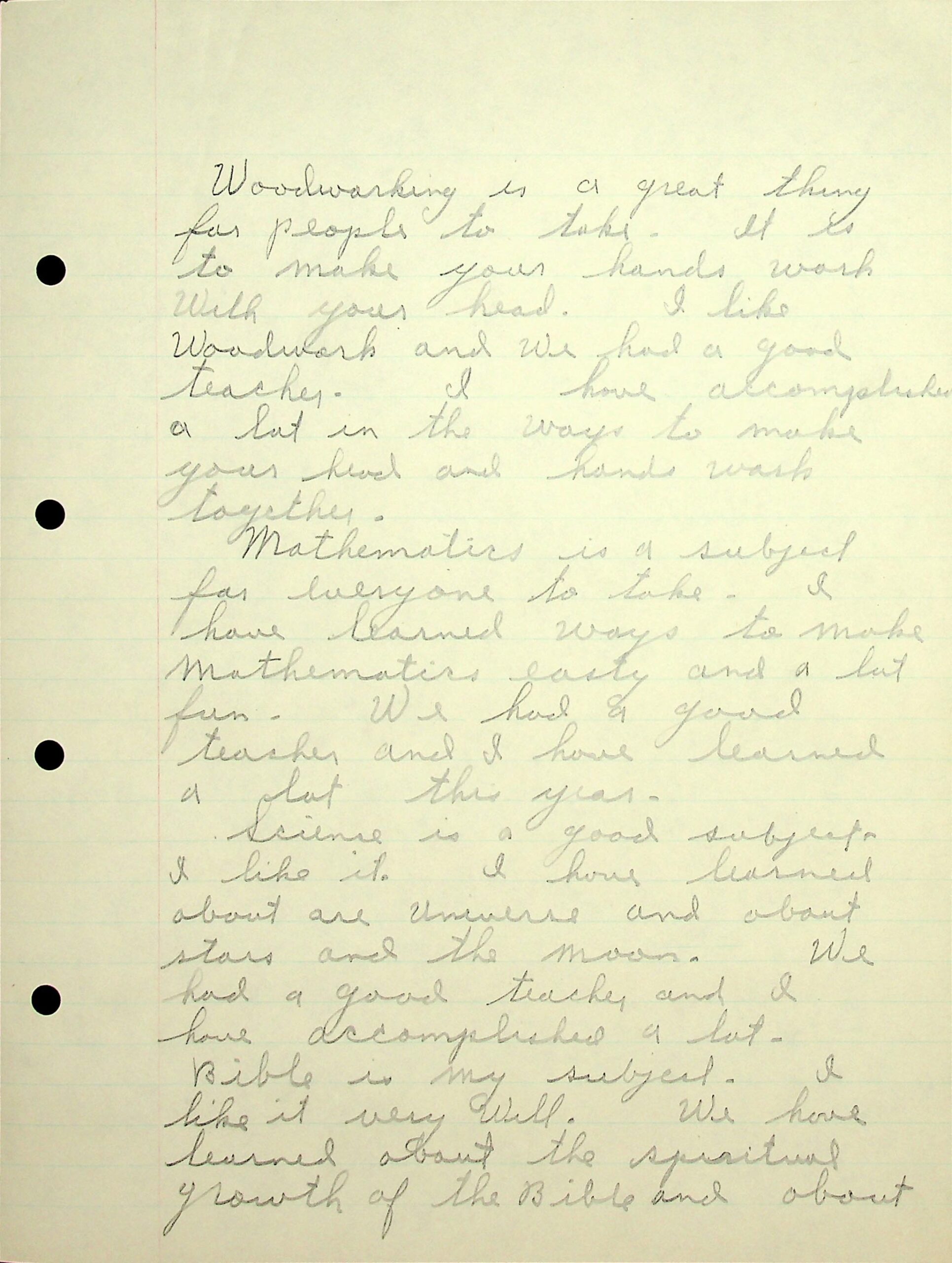 05 (Page 2) woodworking (“I have accomplished a lot in the ways to make your head and hands work together.”); mathematics; science (universe, stars, moon); Bible (spiritual growth.