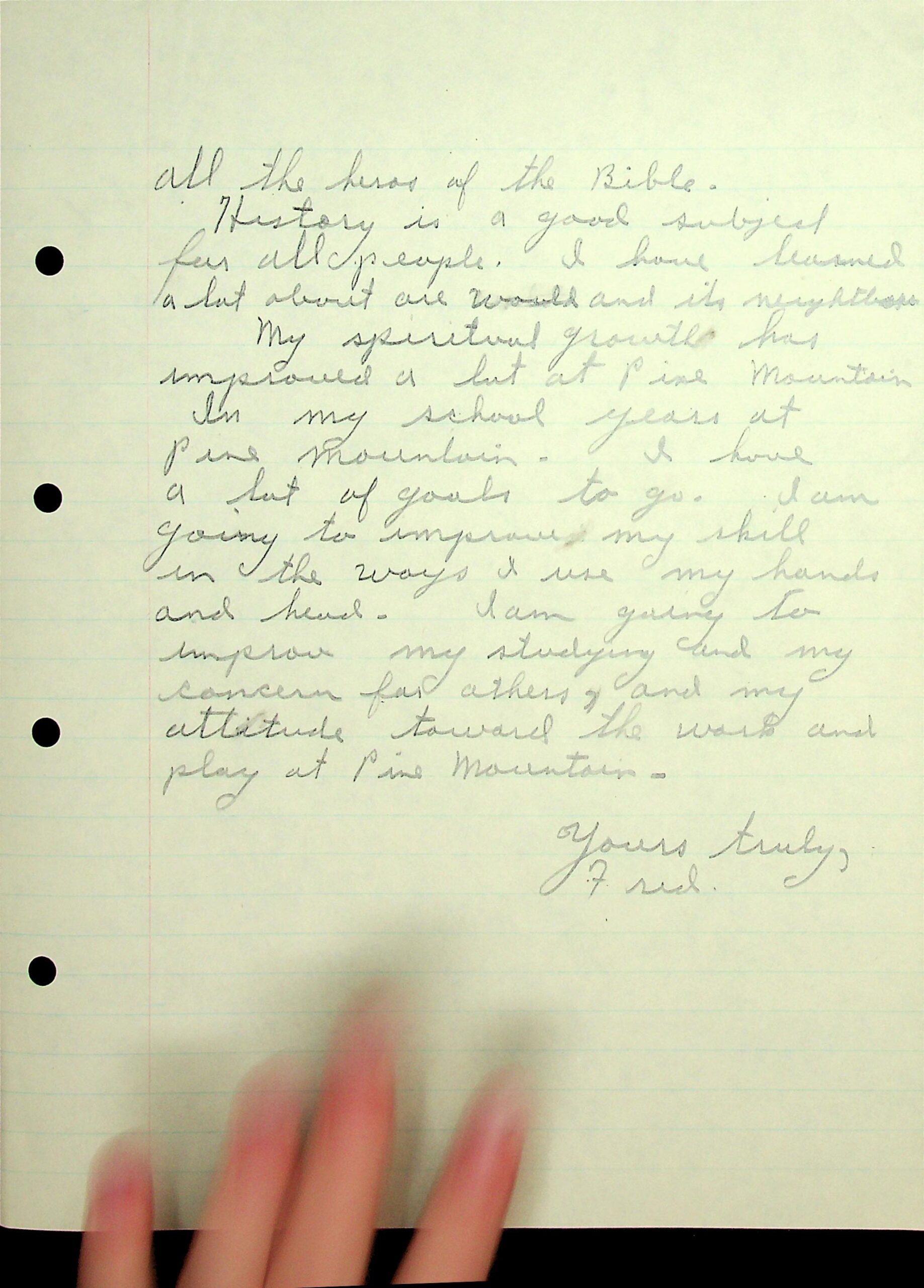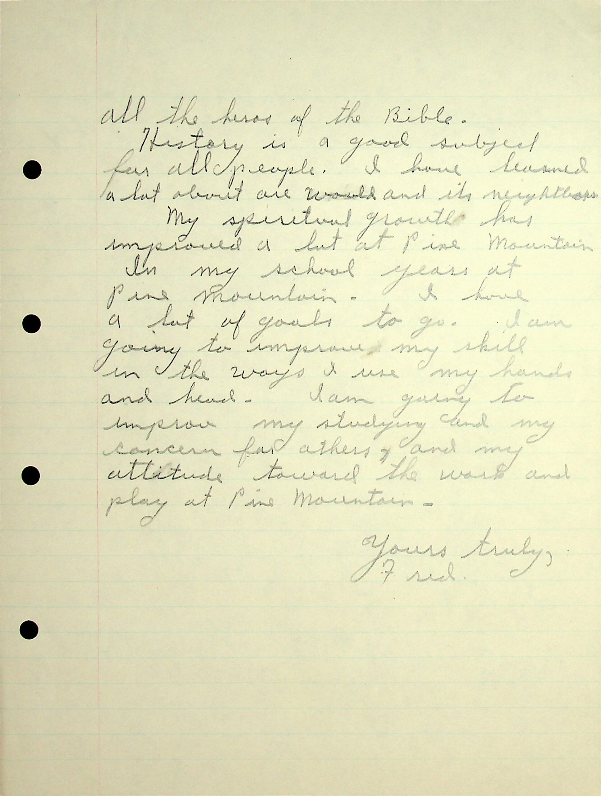 11 (Page 3) He wishes “to show more concern for others next term and to improve in all my subjects.”