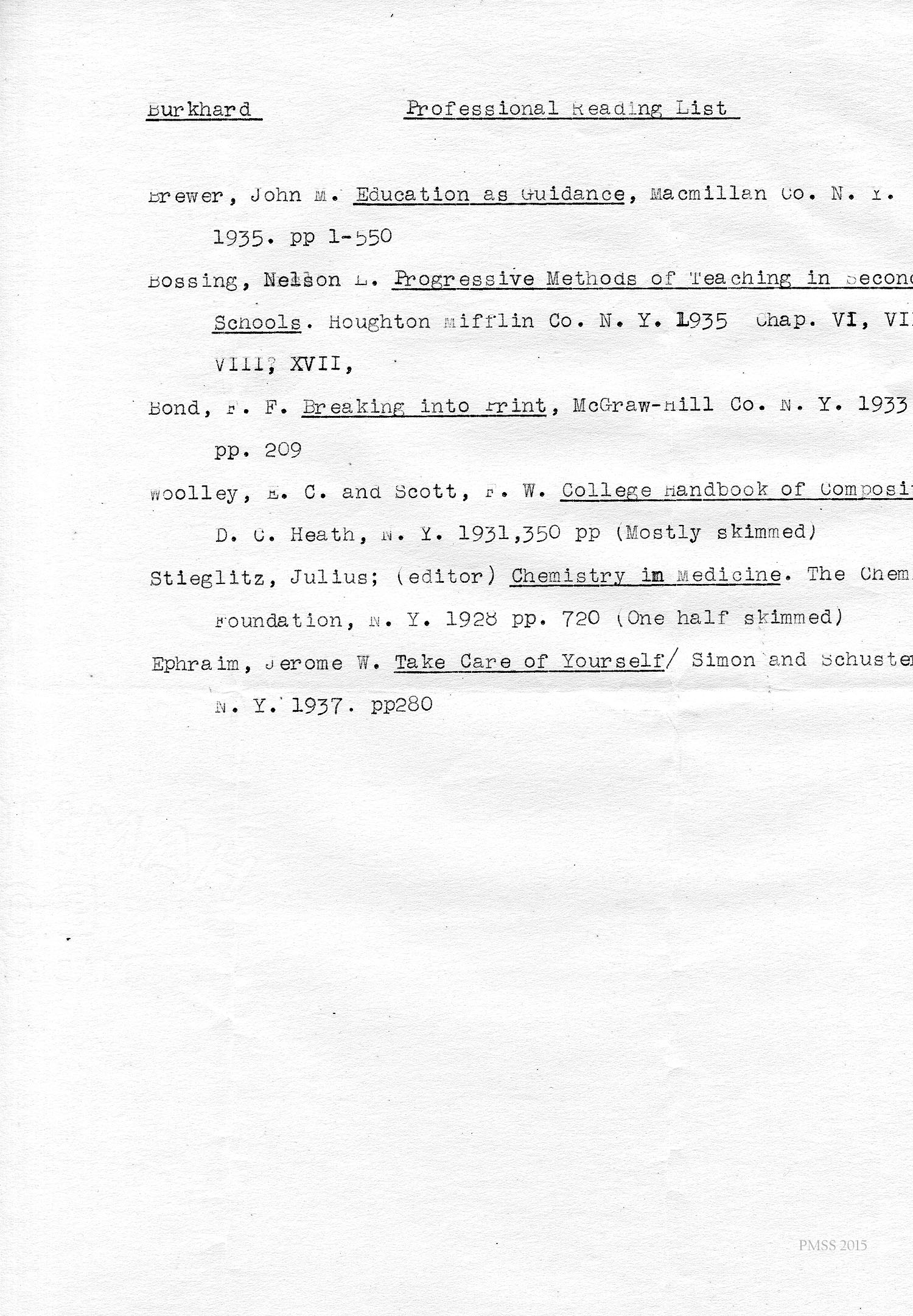 - 1938 Fred Burkhard Professional Reading LIst