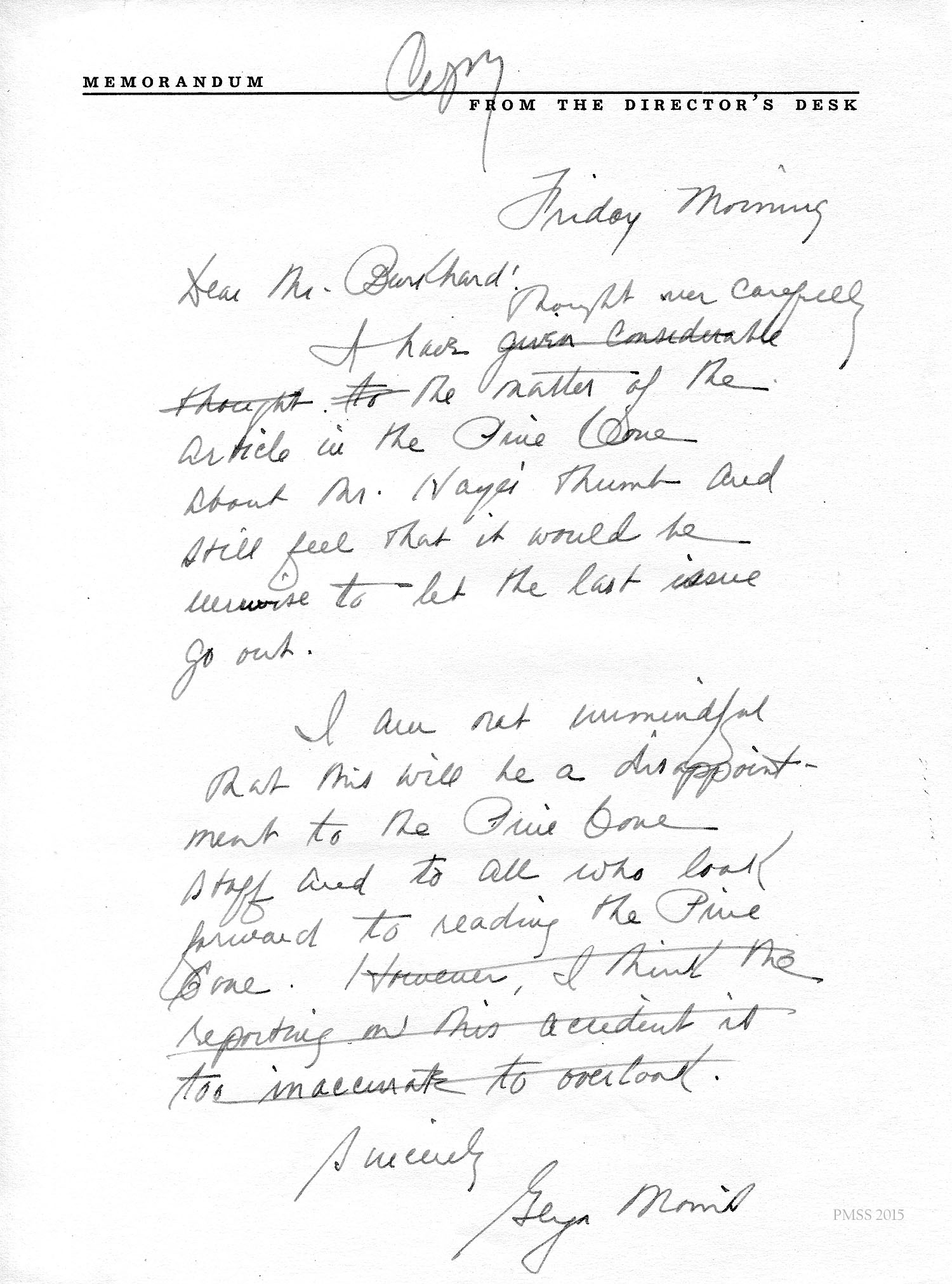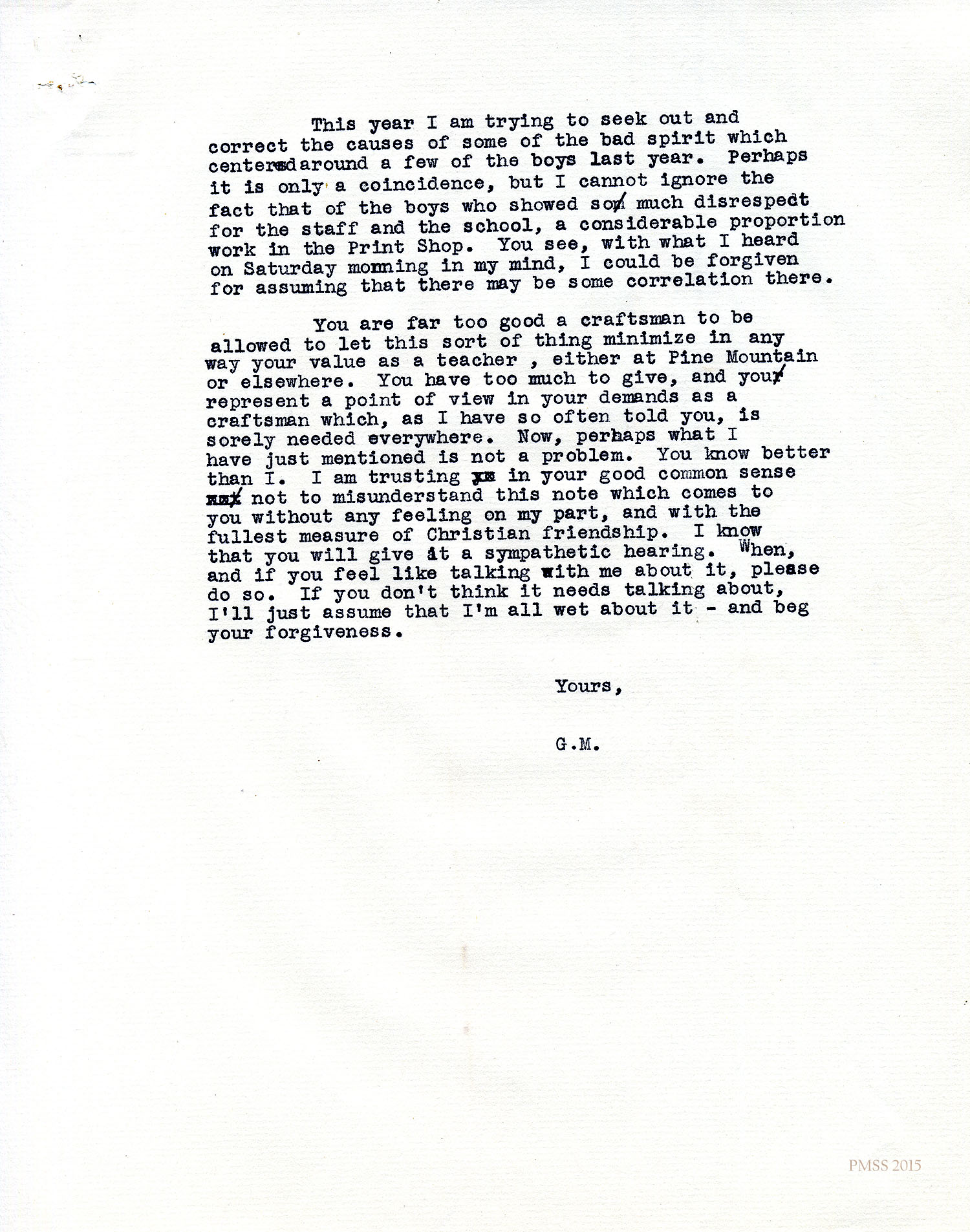 Having spent many an hour overtime and worked for the improvement of your Print Shop, I still feel that I have an interest in that place as well as Pine Mountain as a whole.