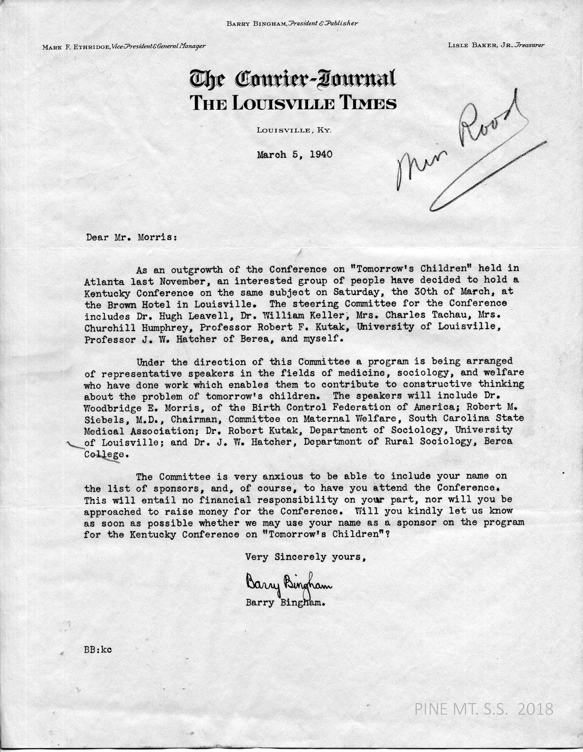 Mar 5, 1940 – Barry Bingham (President of The Courier-Journal/Louisville TImes) to Morris