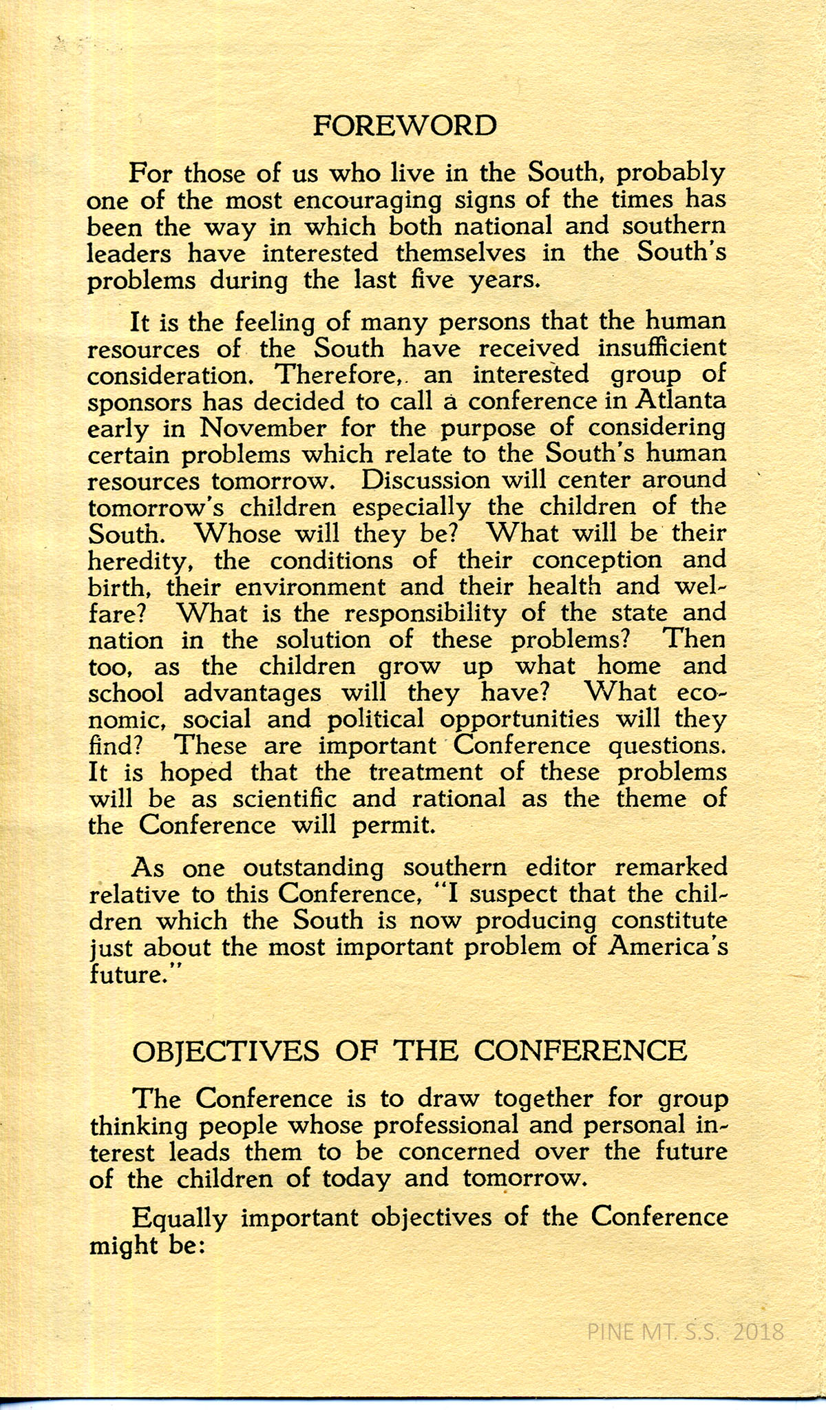 “… tomorrow’s children … Whose will they be? What will be their heredity, the conditions of their coception and birth their environment and their health and welfare? What is the responsibility of the state and nation in the solution of their problems? Then too, as the children grow up what home and school advantages will they have? What economic social and political opportunities will they find? …