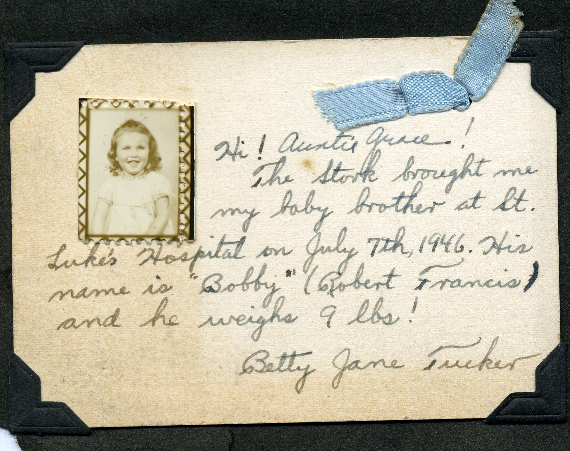 - Betty Jane Tucker. Grace Rood Album. Announcement of Robert Francis Tucker’s birth.