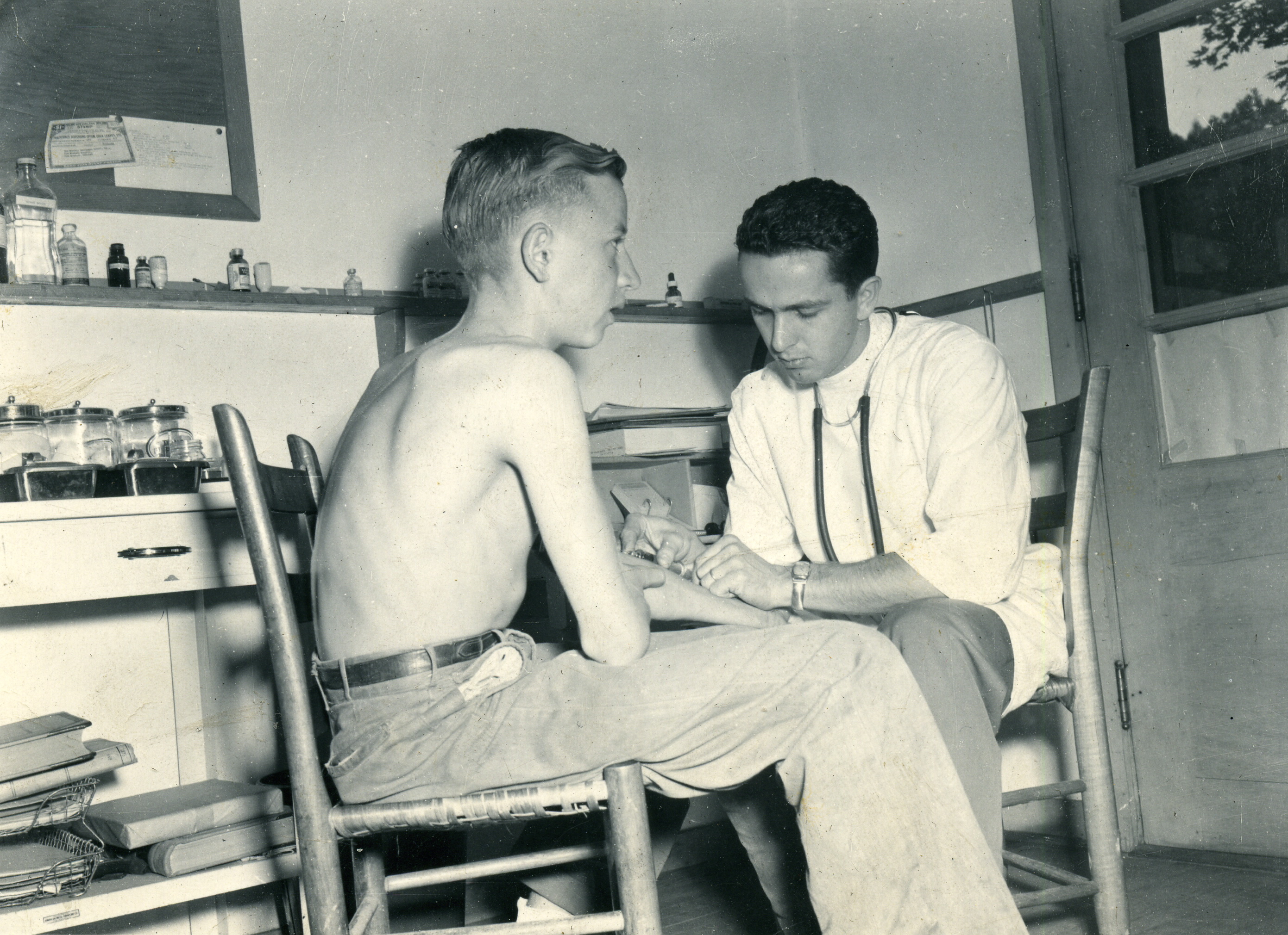 - Dr. Brown with shirtless young boy patient. Grace Rood Album.