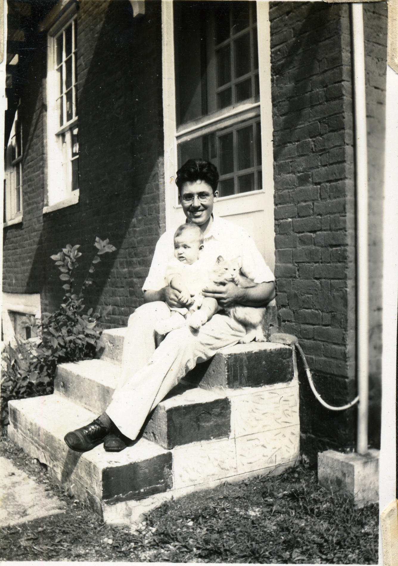 - Dr. Elizabeth Henderson and son, Harold, in front of Laurel House, c. 1946. Grace Rood Album. [rood_040.jpg]
