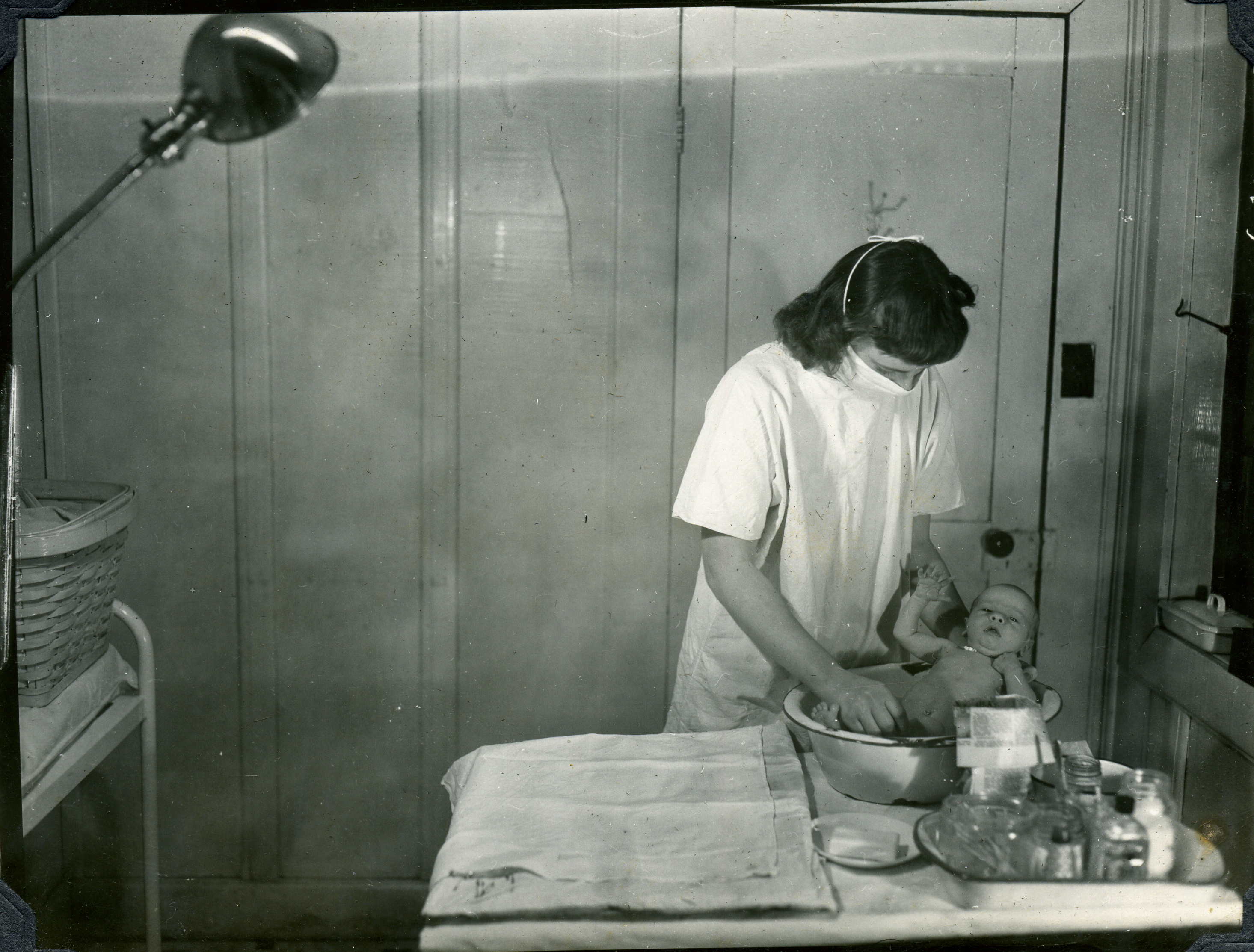 - Bathing baby at infirmary. Grace Rood Album. [rood_085]