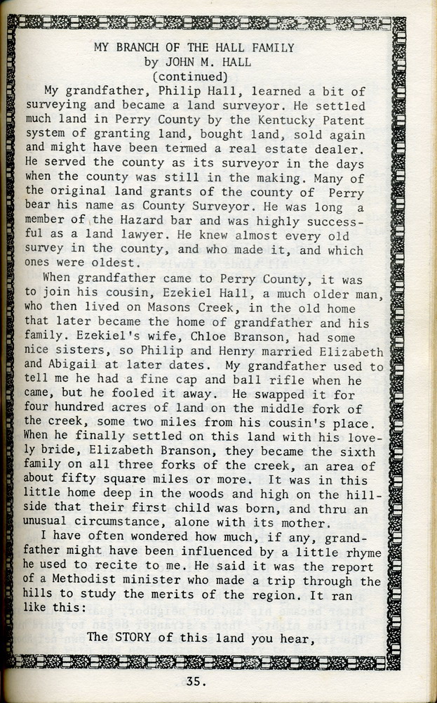 “HALL FAMILY HISTORY RED BOOKLET” consists of 38 images of pages from a small red booklet that outlines a brief Hall Family history. The narrative centers on the family of P.W. Hall of Viper, Kentucky. The booklet joins many other accounts of eastern Kentucky Hall families. It was published at the time of the celebration of the fiftieth family reunion in 1950 (?) — one of the longest running family reunions in the State of Kentucky.