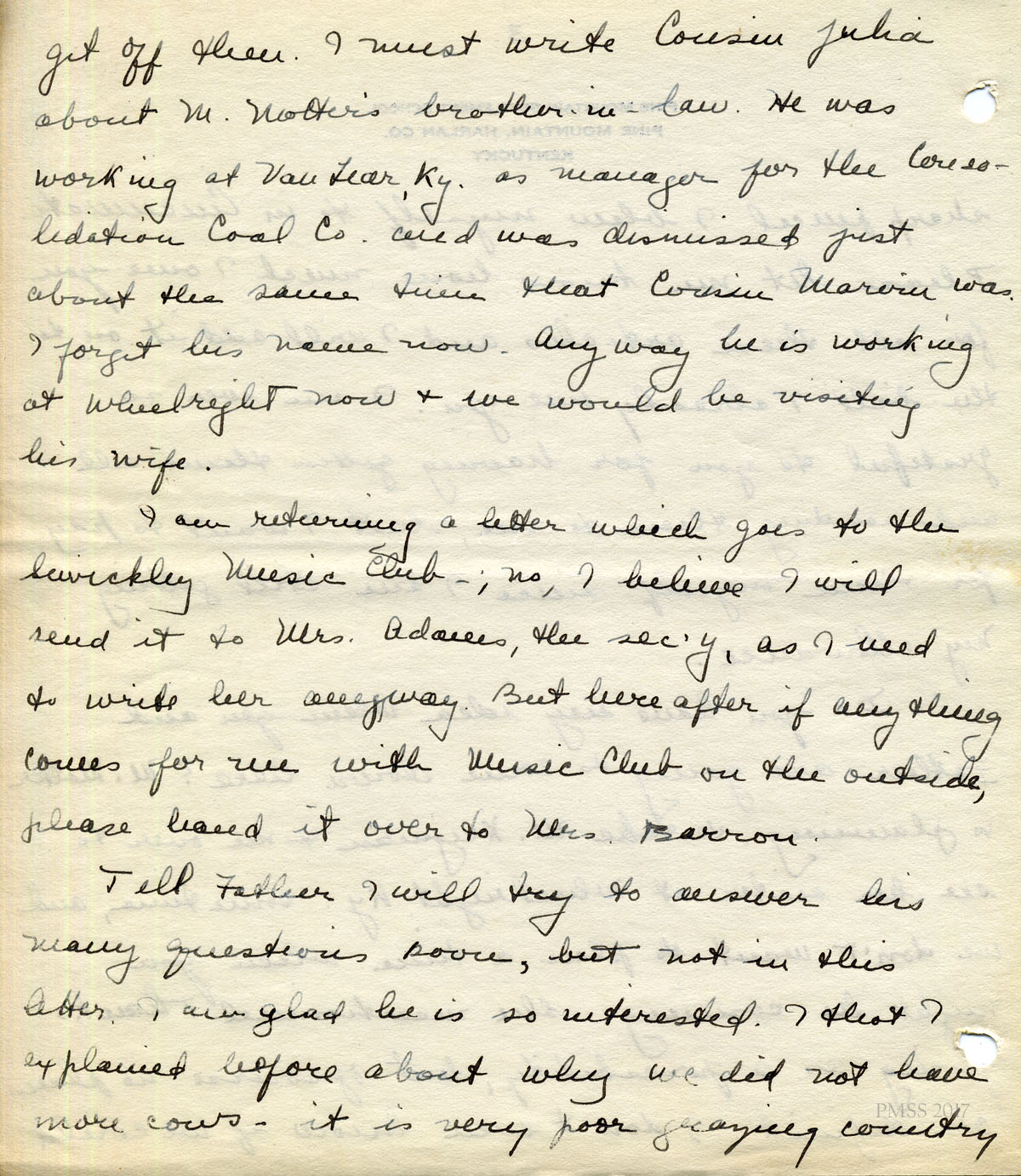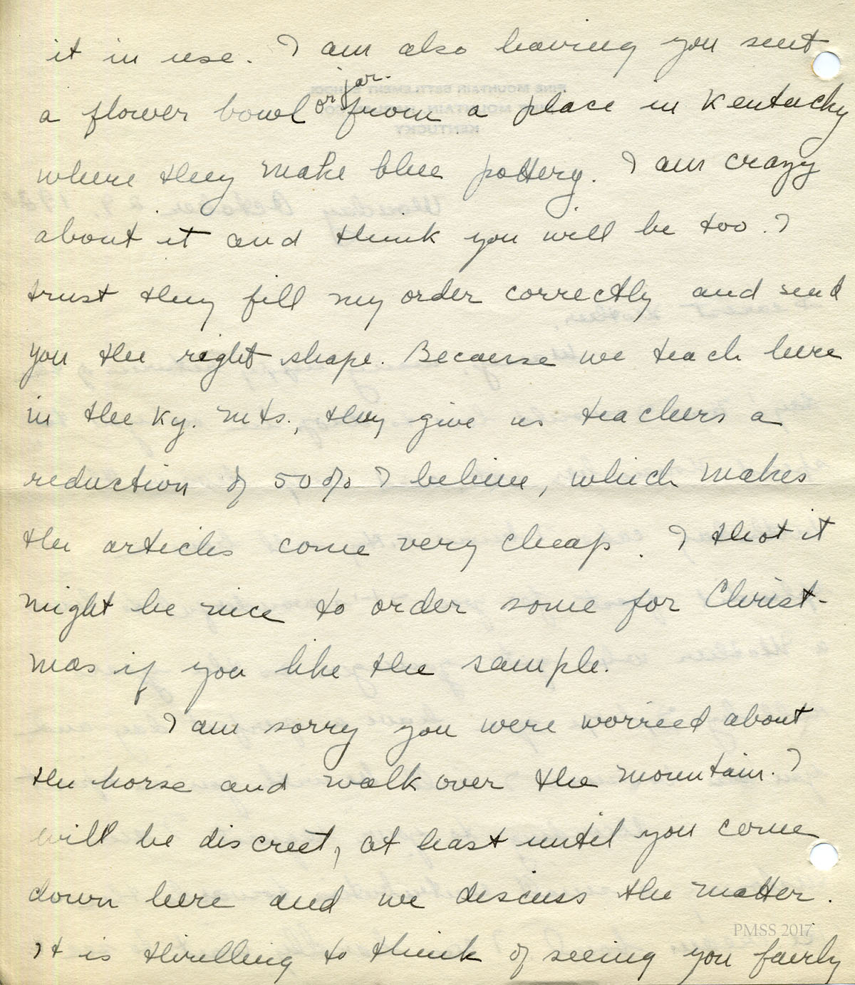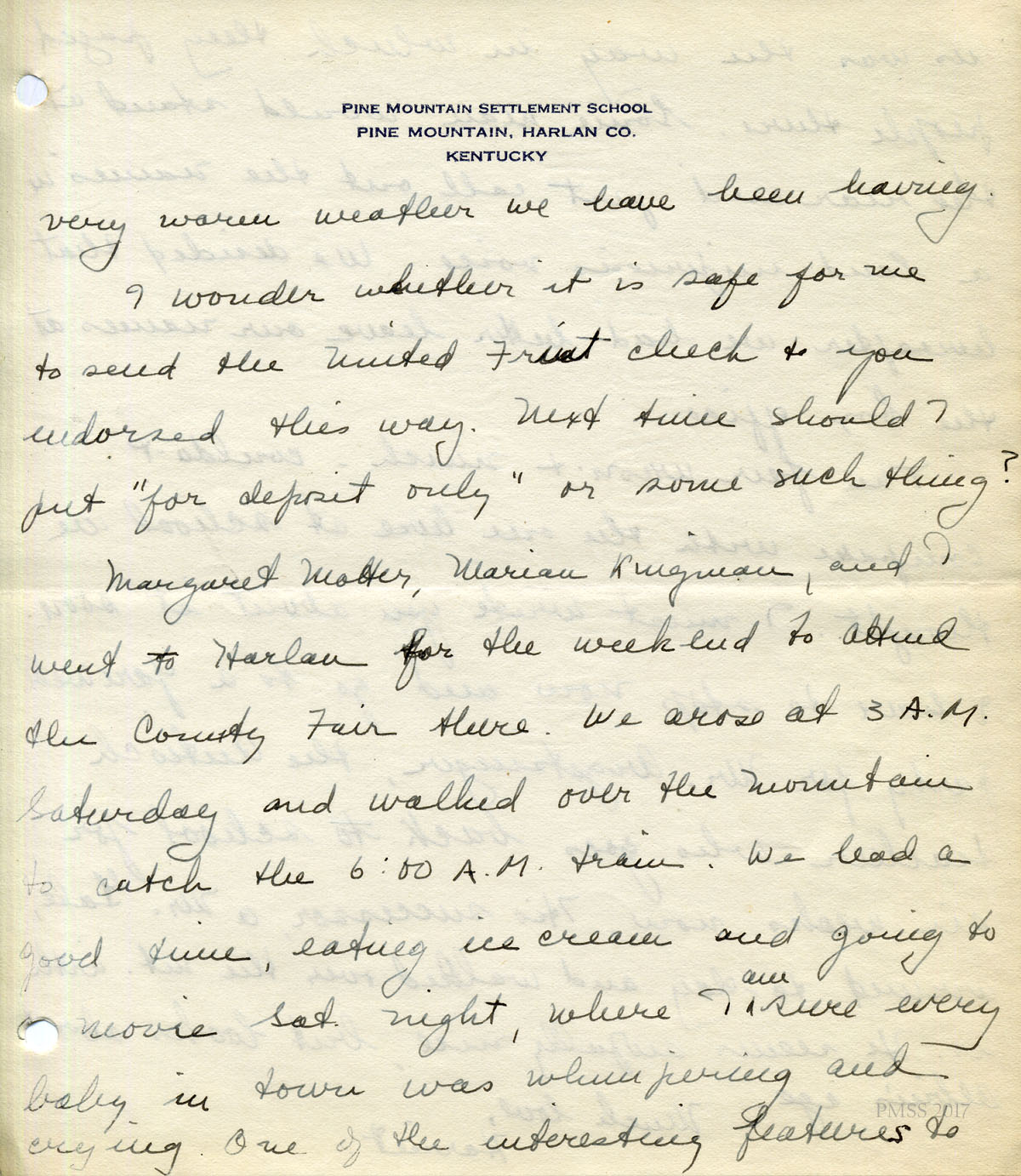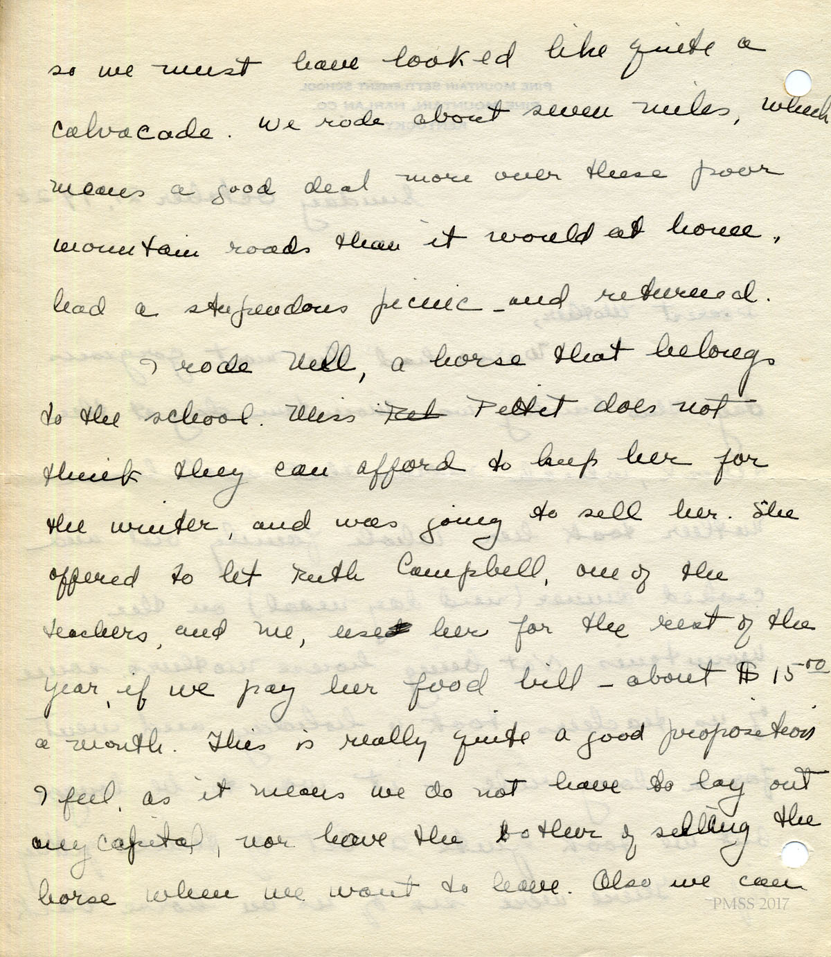 In the summer of 2017 John Orndorff, Harriet Crutchfield’s son, visited Pine Mountain Settlement School and brought along the following “journal” comprised of letters his mother, Harriet, wrote to family and friends during her time as a teacher at Pine Mountain Settlement School. Over 200 pages of Harriet’s observations, reflections, and experiences fill the small black binder. Her son noted when talking with the staff at Pine Mountain that he could think of no better place for the journal to be appreciated. His generosity and his astute assessment of the journal’s importance to Pine Mountain Settlement are profoundly appreciated.