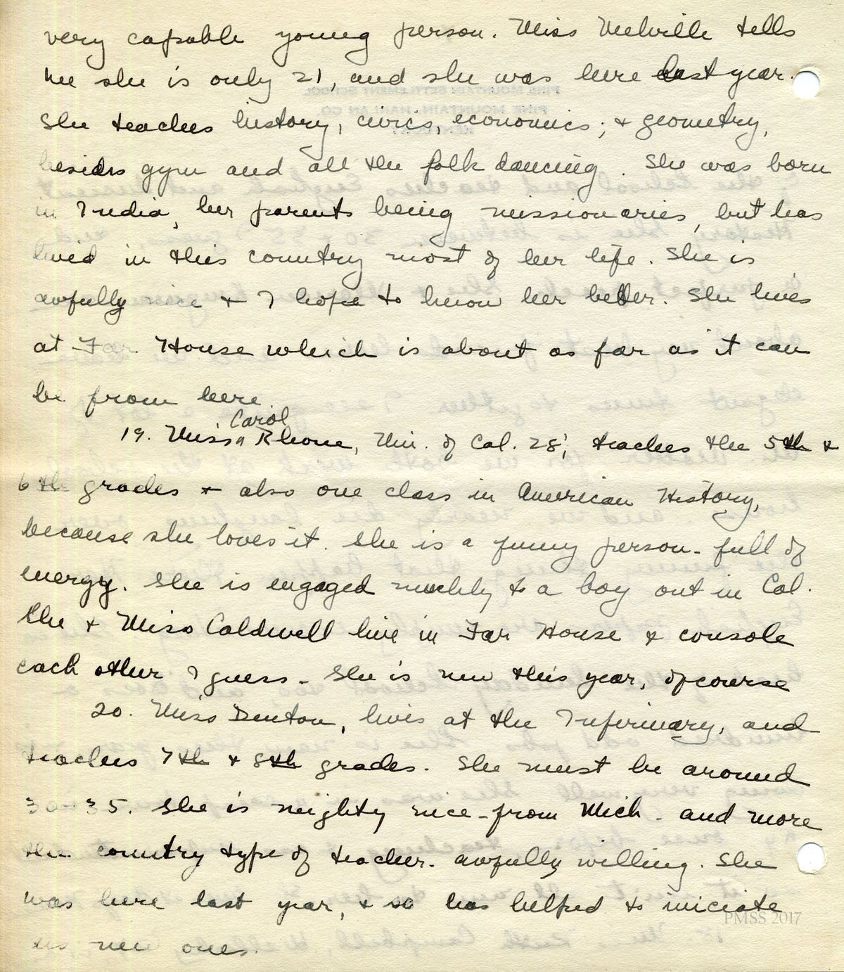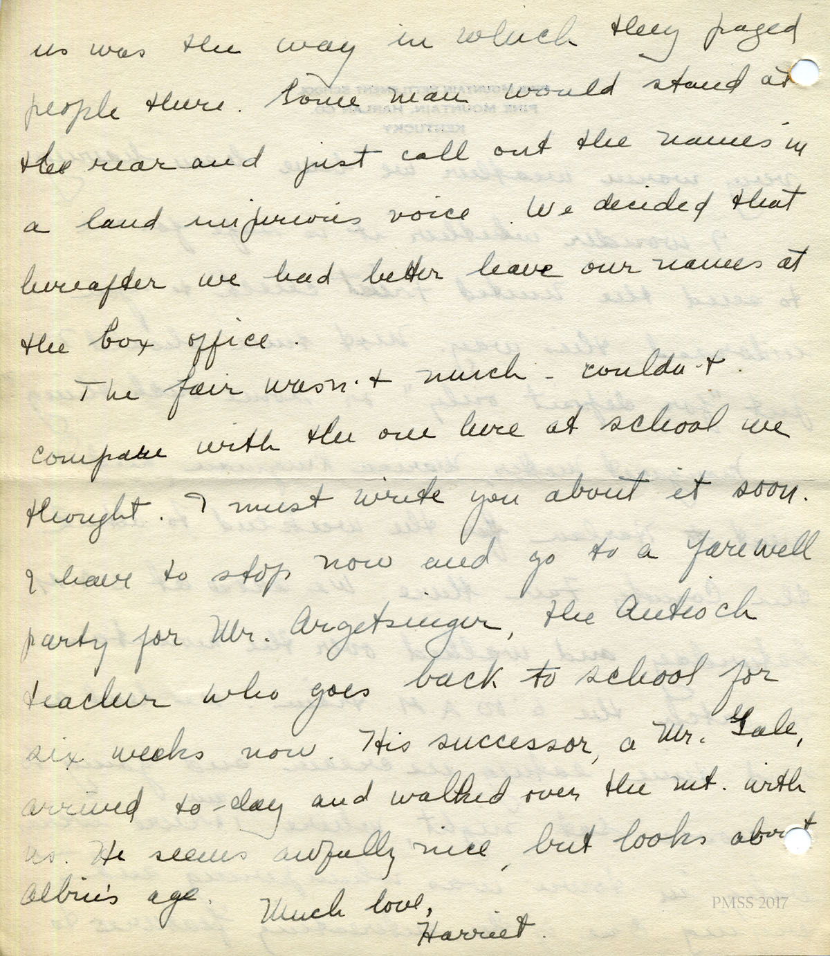 Harriet Crutchfield, PMSS Teacher 1928-1930