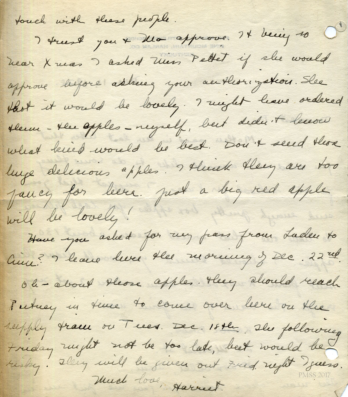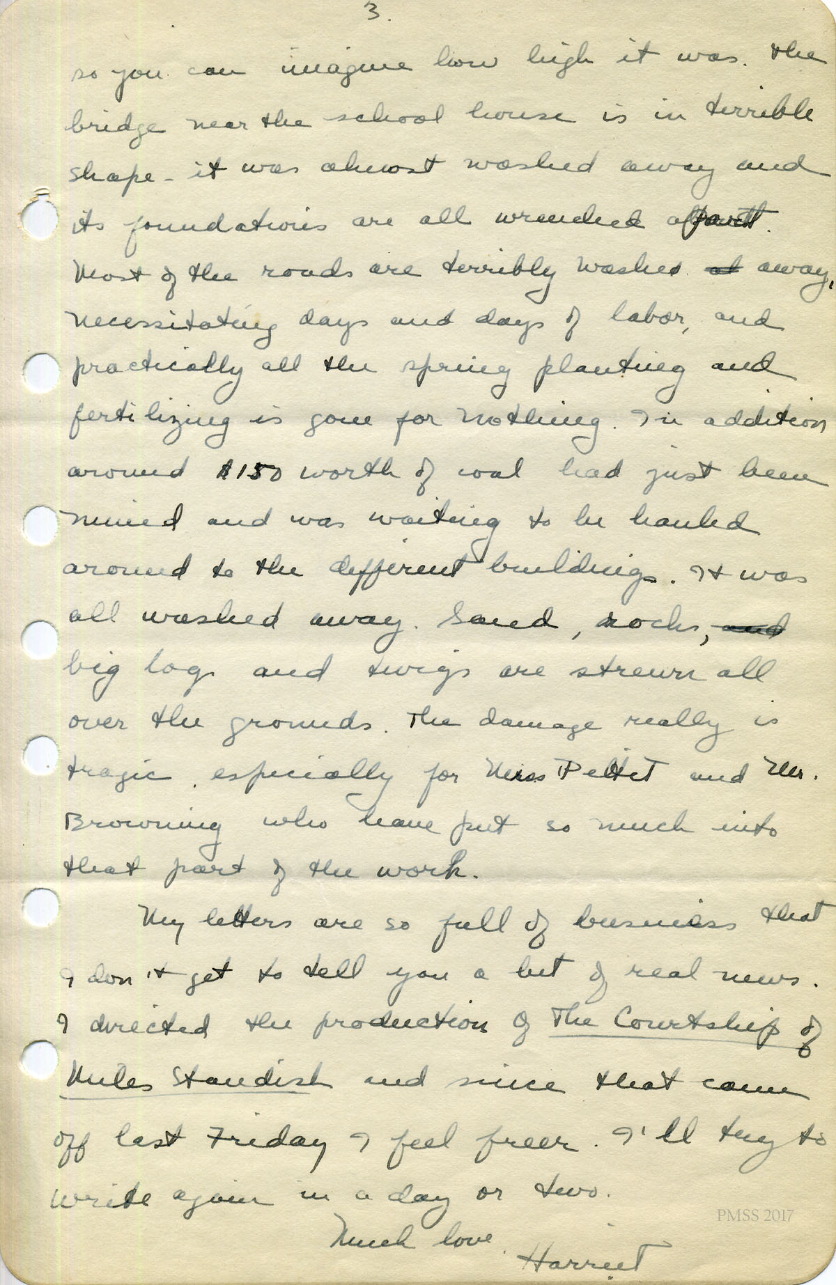TAGS: Harriet Crutchfield Journal Part 3, Harriet Crutchfield Orndorff, teachers, PMSS Advisory Board, James S. Crutchfield, Alice (Pilkington) Crutchfield, John Orndorff donation of his mother’s journal, PMSS Board of Trustees, American Fruit Growers Association, organized marketing of produce, Blue Goose brand, scholarships, images of Harriet Crutchfield’s letters
