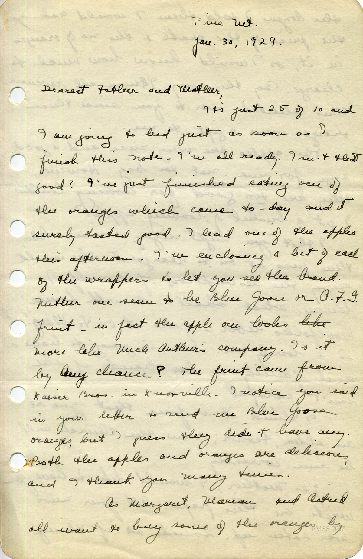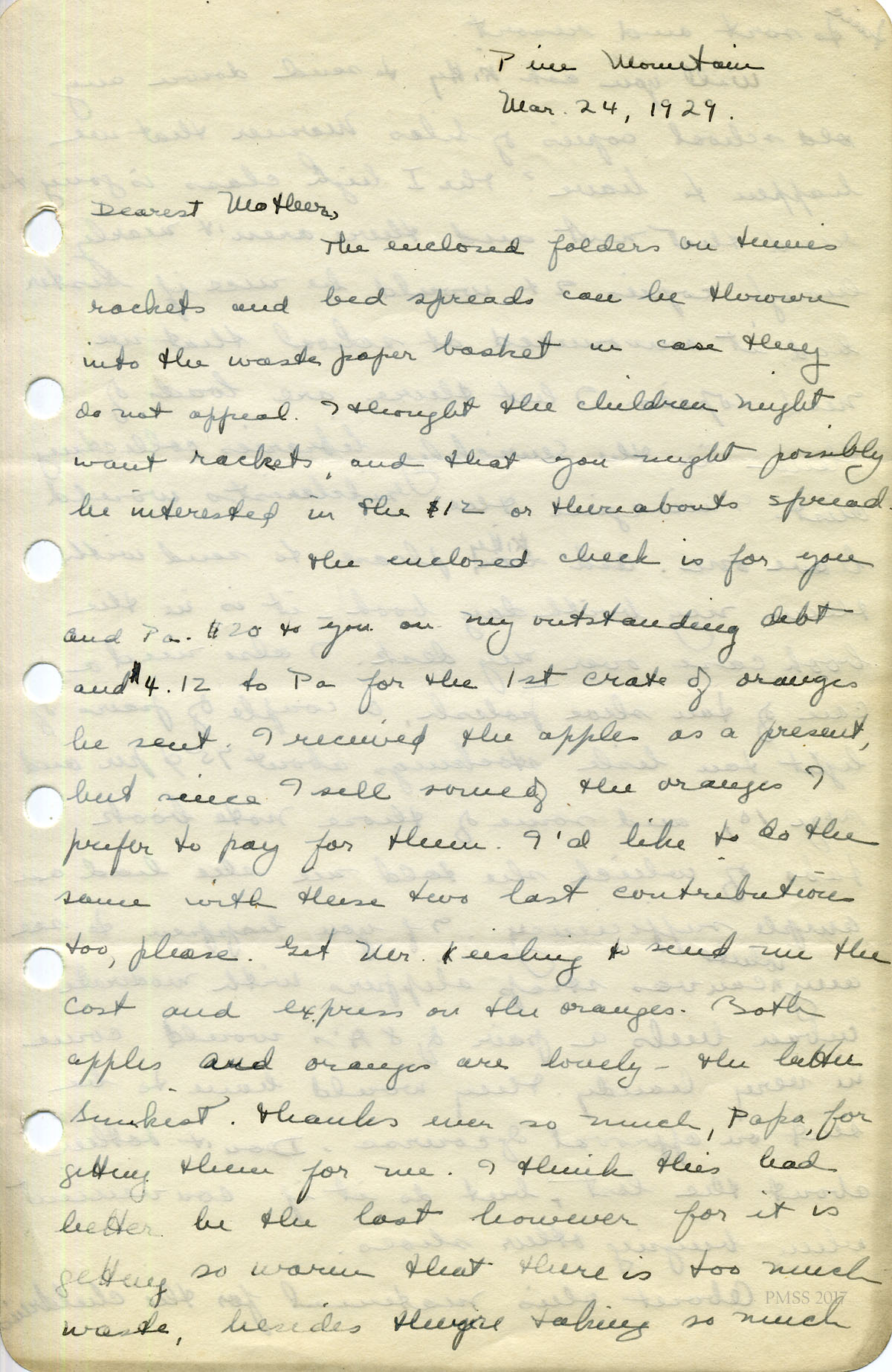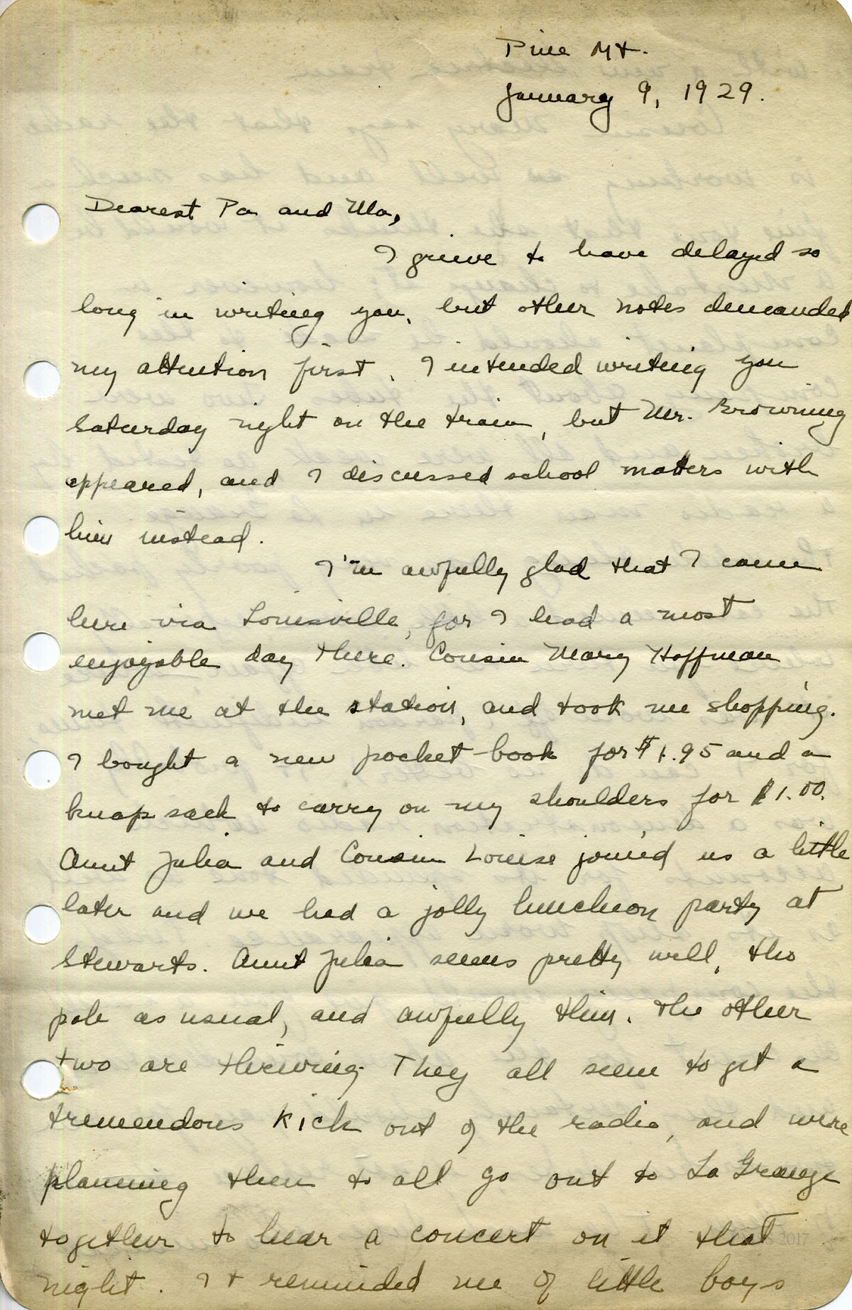 HARRIET CRUTCHFIELD Journal Guide 1929 for summaries of her 1929 correspondence.