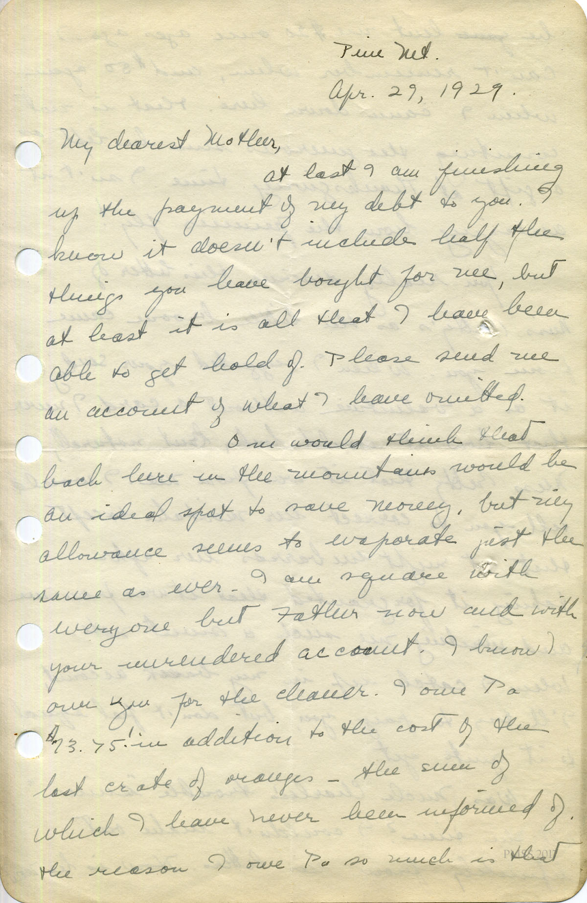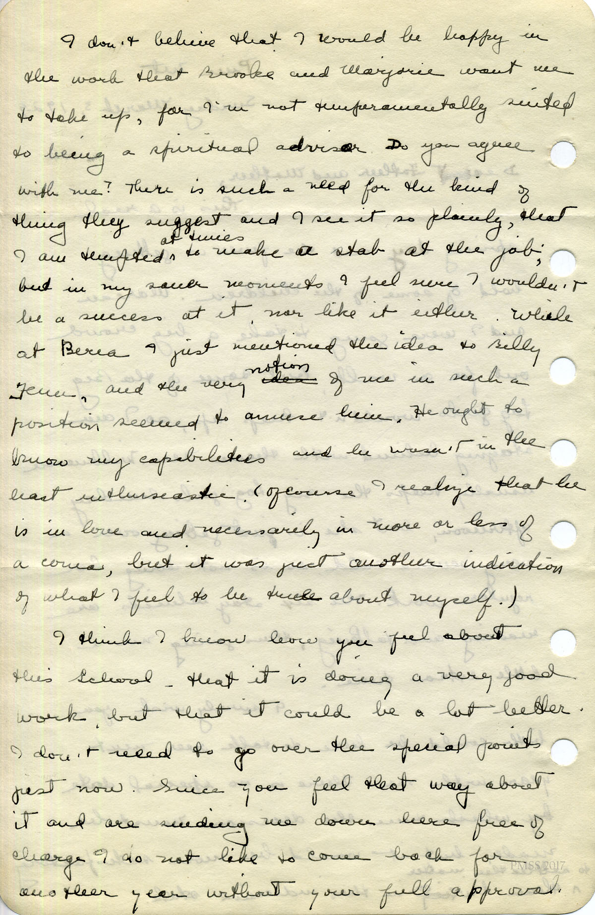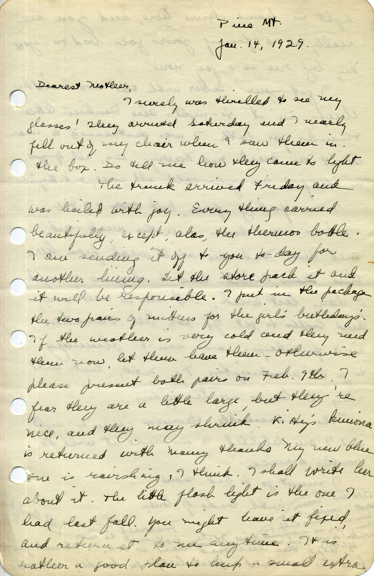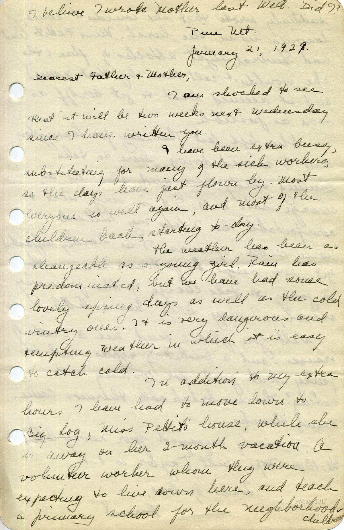 HARRIET CRUTCHFIELD Journal Guide 1929 for summaries of her 1929 correspondence.