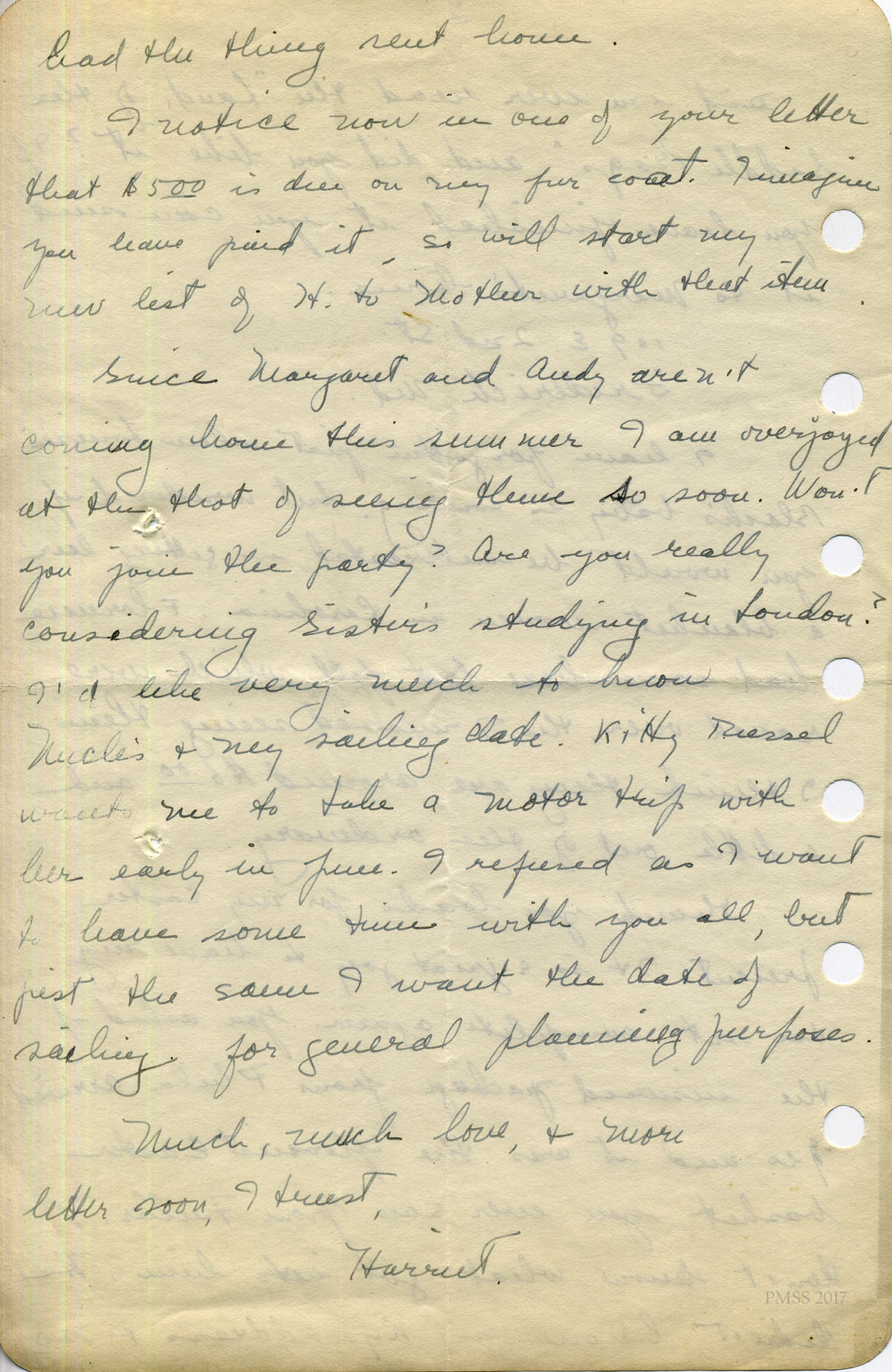 HARRIET CRUTCHFIELD Correspondence After PMSS 1931-1956