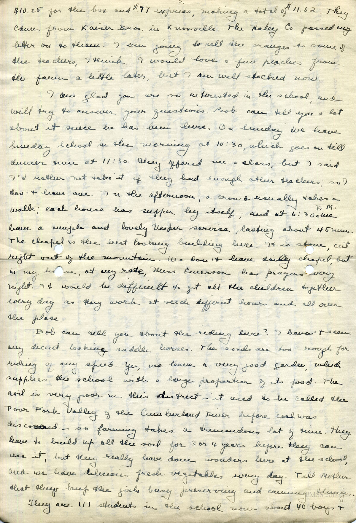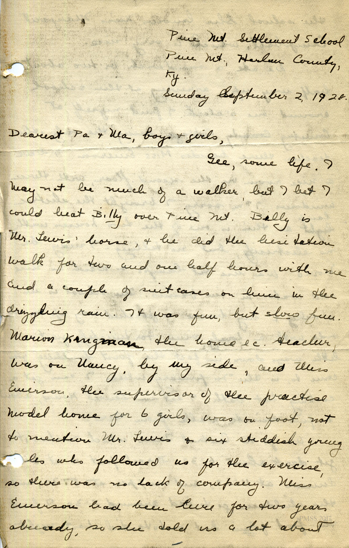 In the summer of 2017 John Orndorff, Harriet Crutchfield’s son, visited Pine Mountain Settlement School and brought along the following “journal” comprised of letters his mother, Harriet, wrote to family and friends during her time as a teacher at Pine Mountain Settlement School. Over 200 pages of Harriet’s observations, reflections, and experiences fill the small black binder. Her son noted when talking with the staff at Pine Mountain that he could think of no better place for the journal to be appreciated. His generosity and his astute assessment of the journal’s importance to Pine Mountain Settlement are profoundly appreciated.