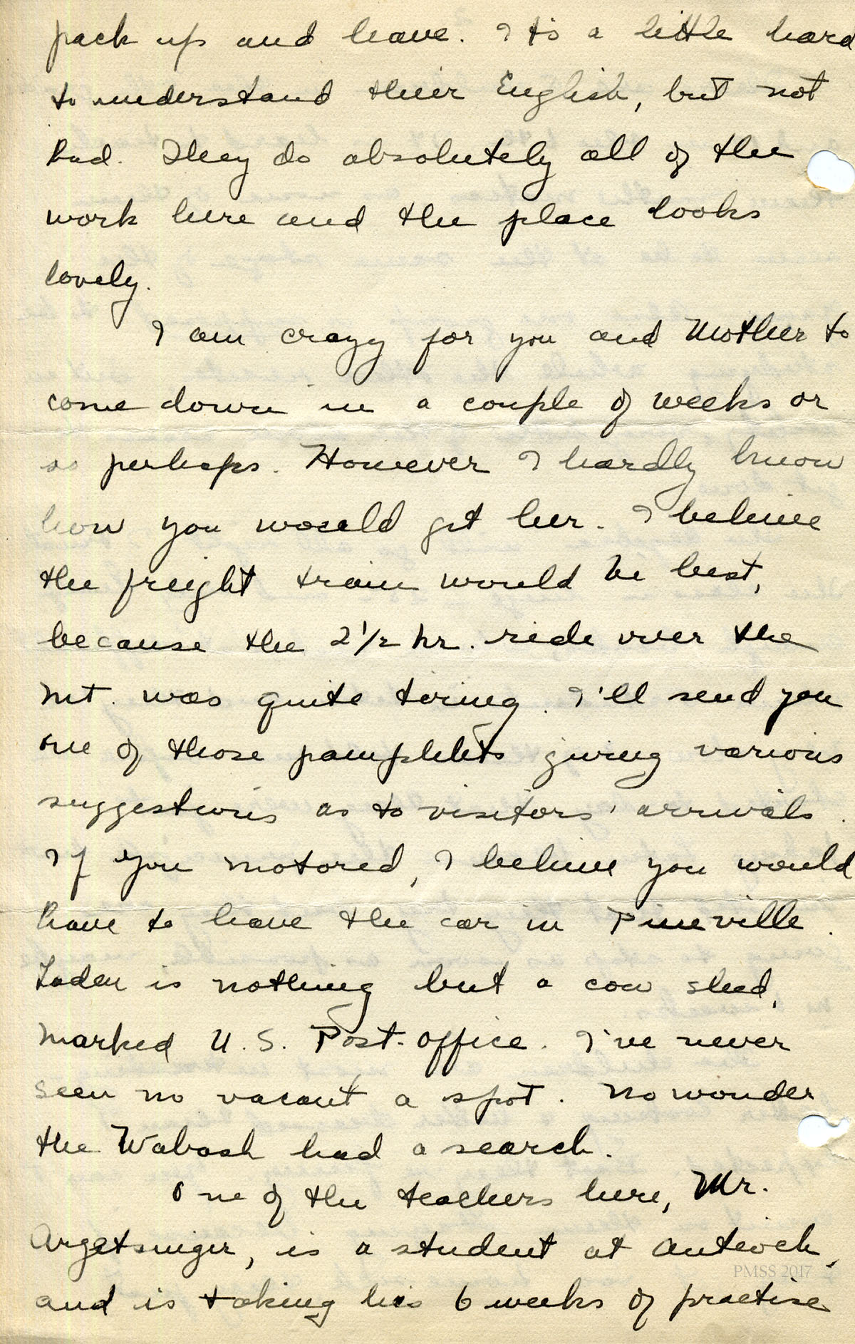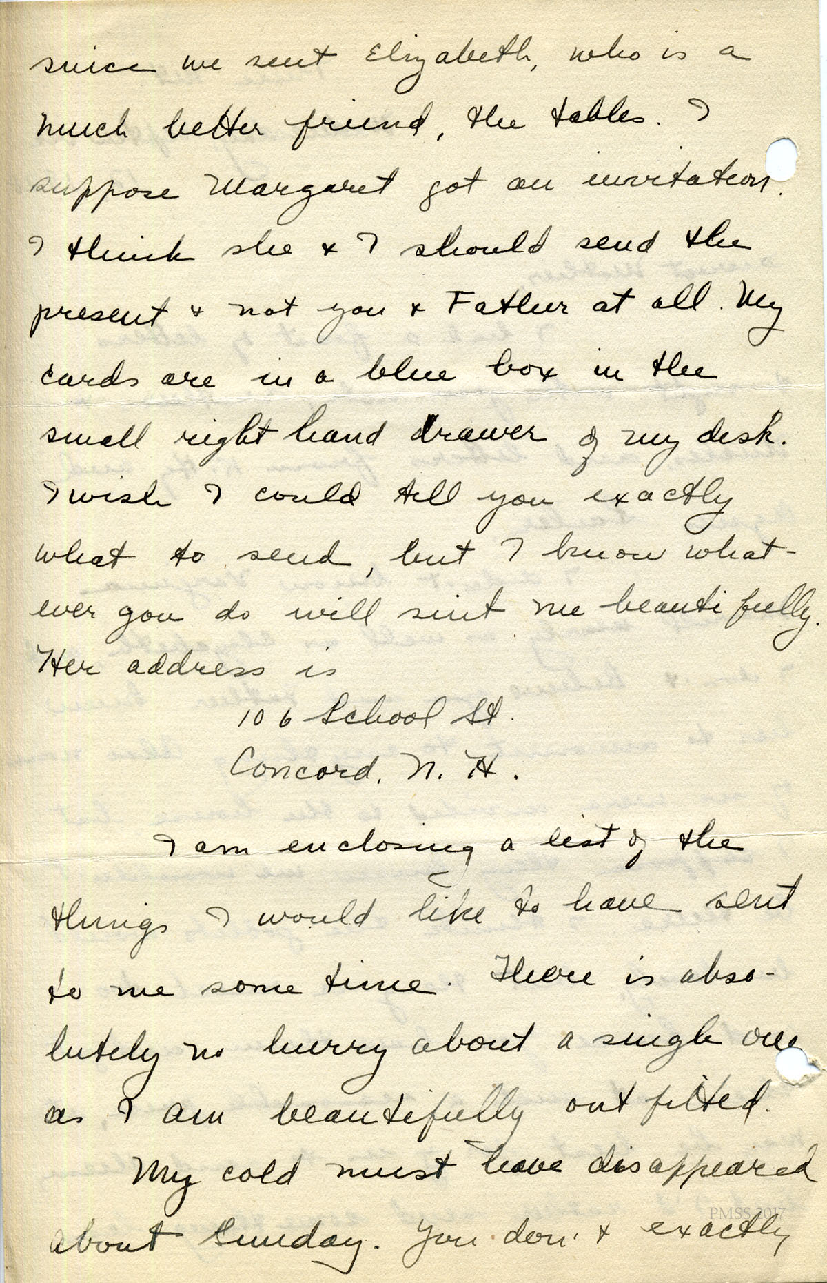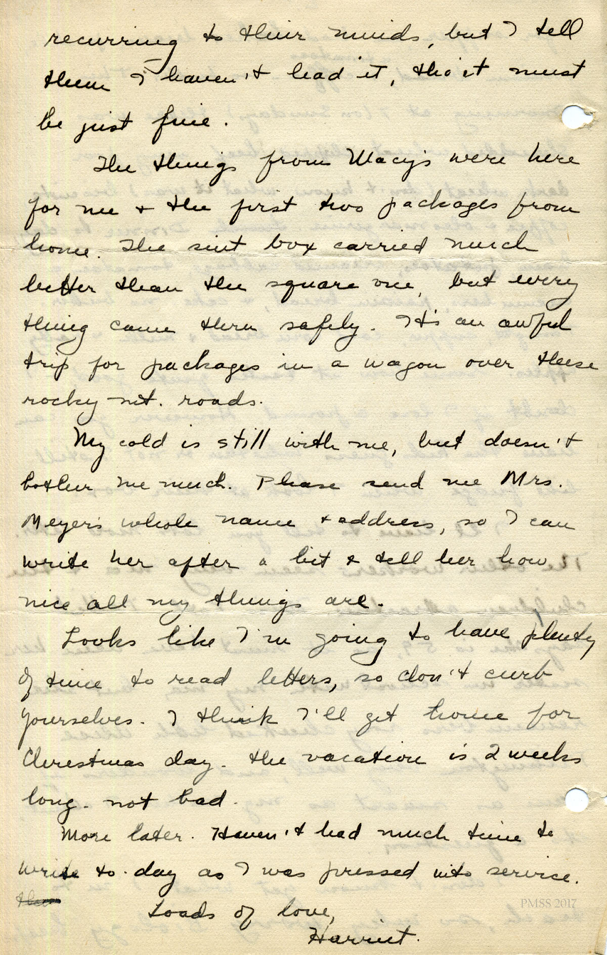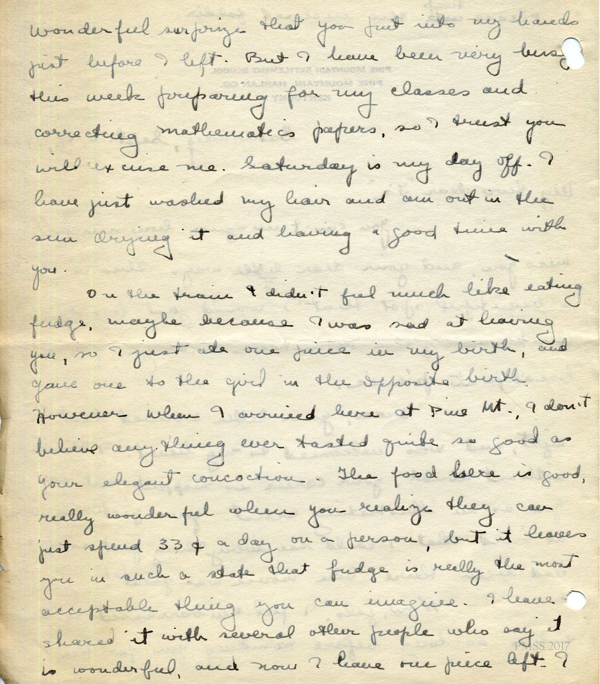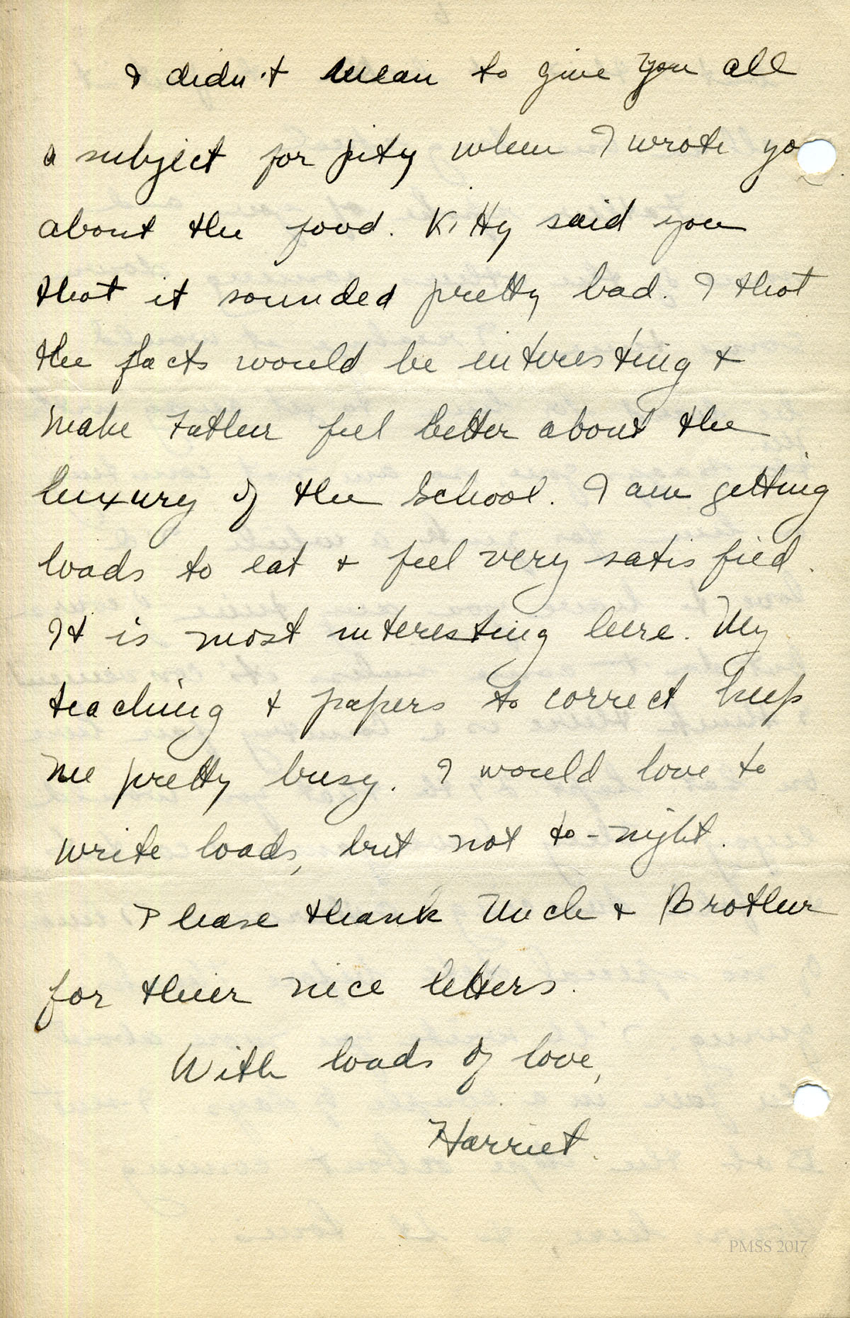 For IMAGES of her correspondence while at PMSS, see:
