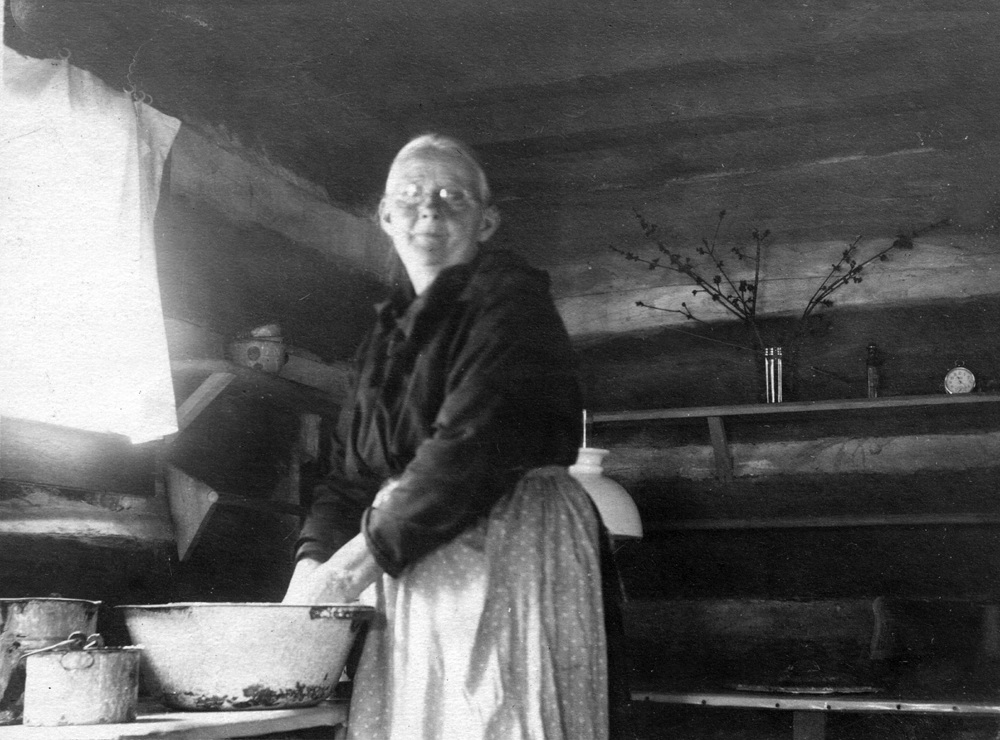 - 14 Friends & Neighbors. Woman at wash basin inside cabin. [Delia Creech]. [Vl_34_1095a_mod.jpg]