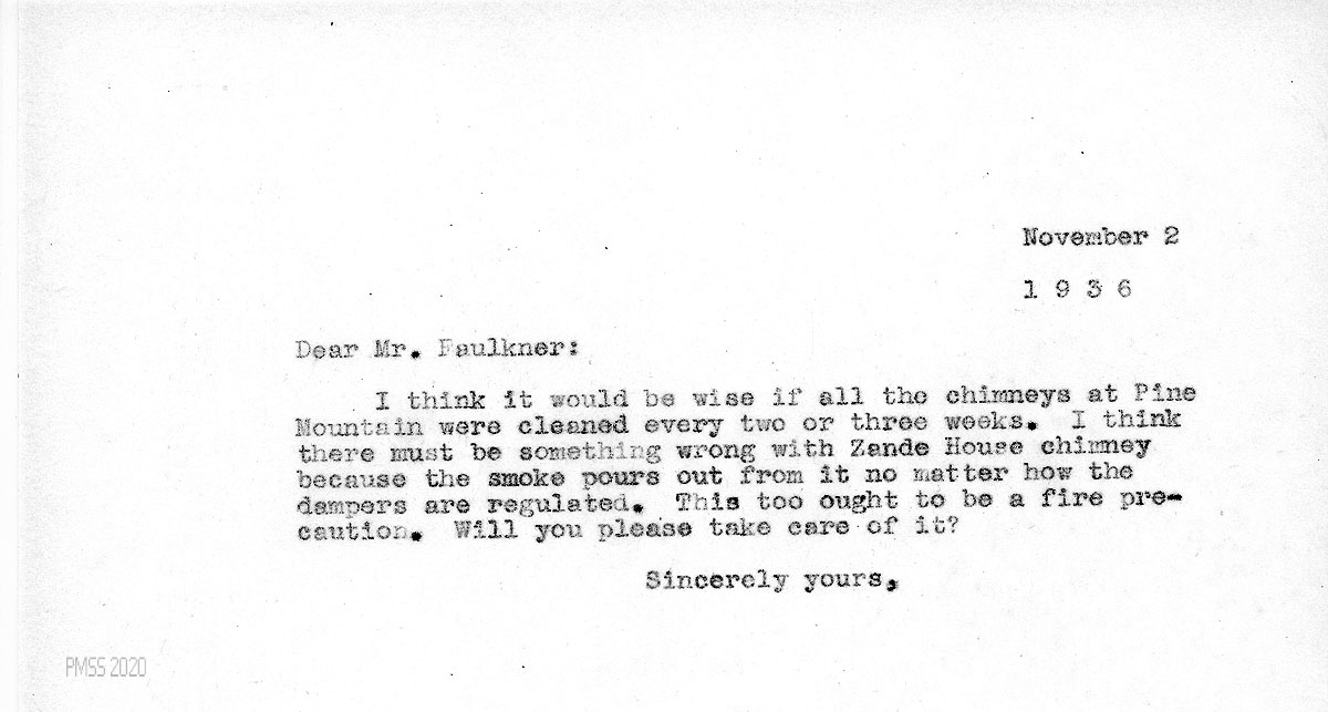 [034] November 2, 1936. To Faulkner from [unsigned], who asks Faulkner to take care of chimneys.