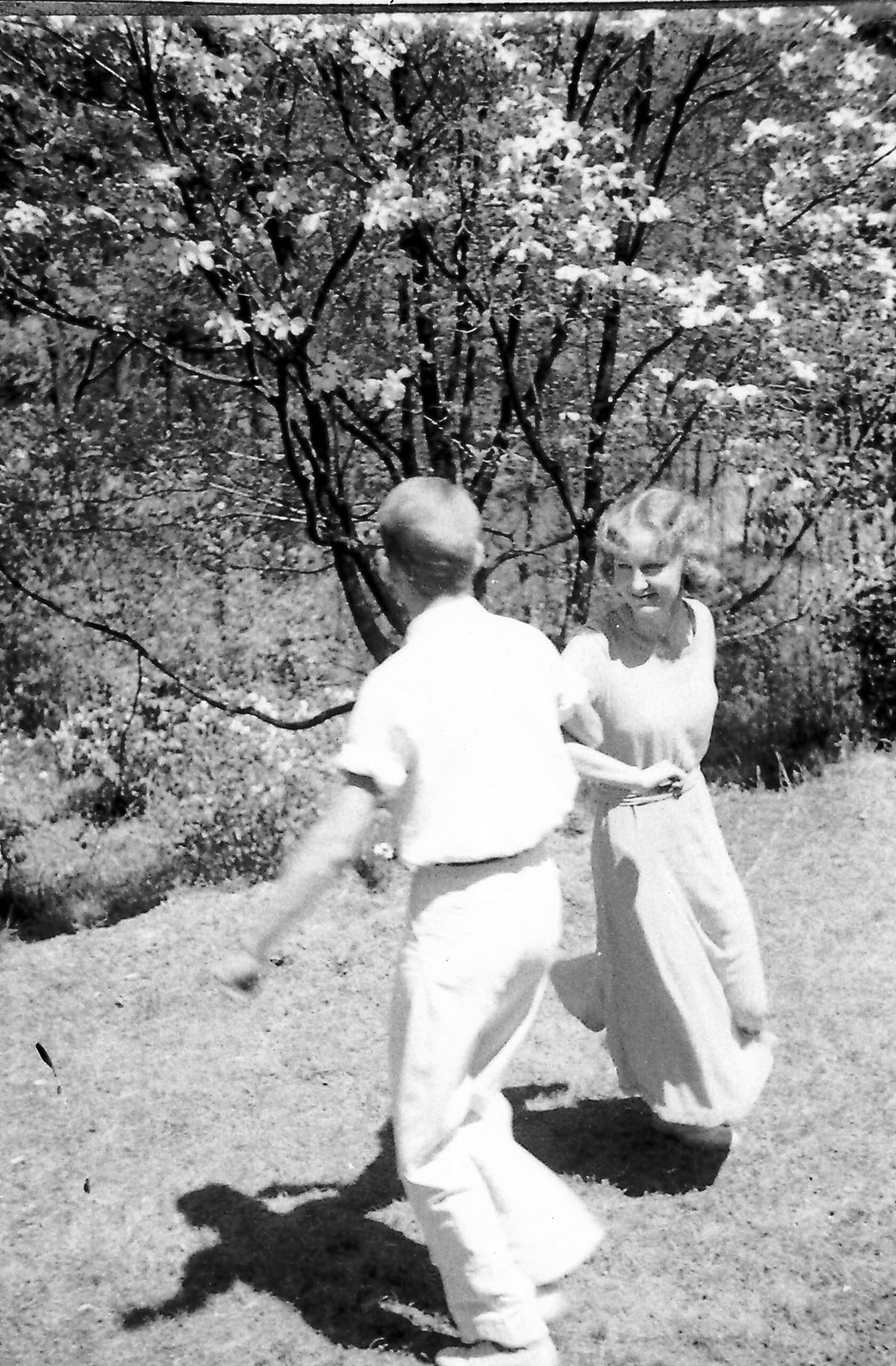 - Dieter Album – Dancing on the Green. Paul Hayes facing camera. In background, Fern Hall Hayes, Joan Ayers.[shul_001.jpg]