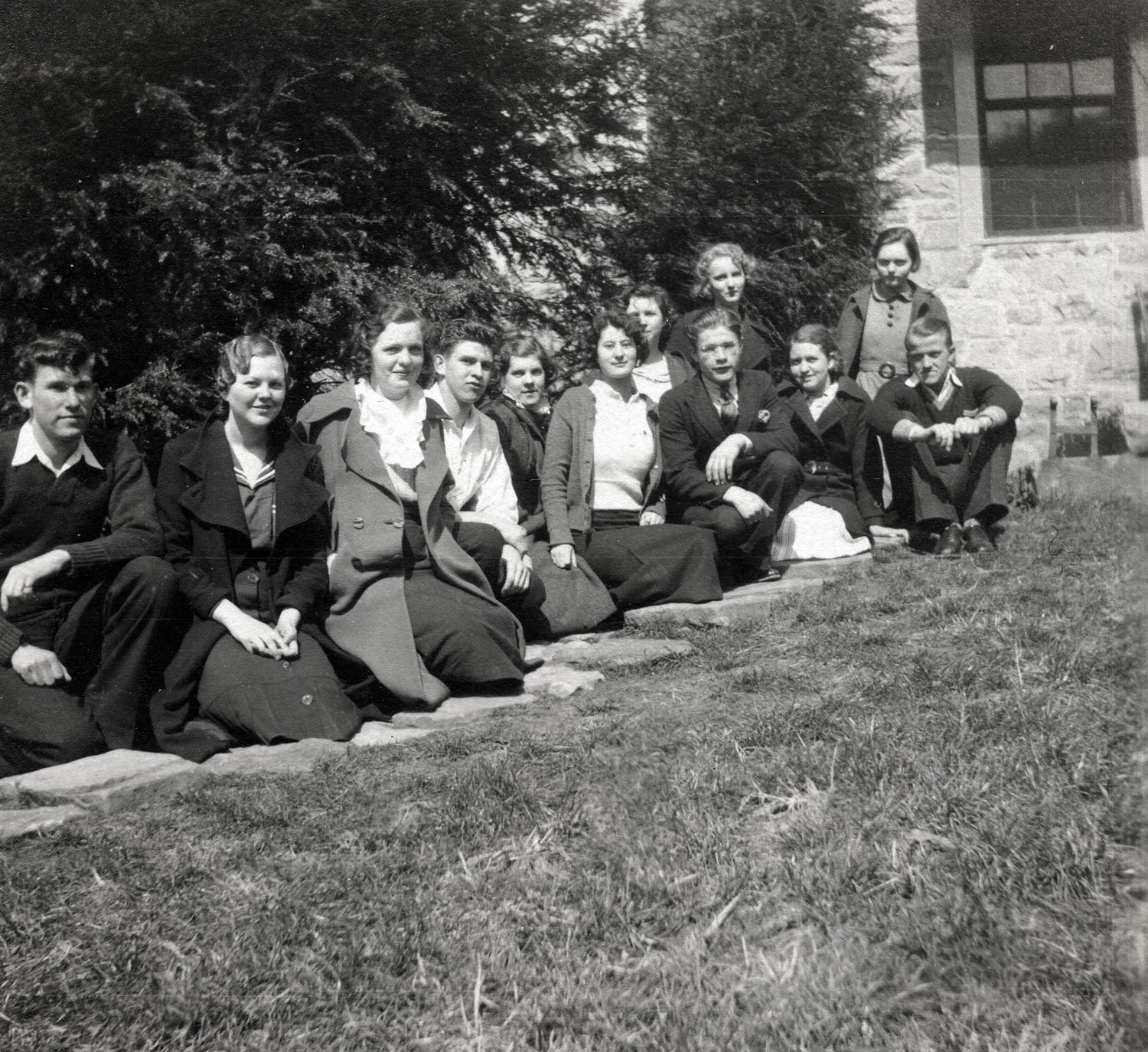 - 06_2447 Seniors 1935. Hubert Cornett, Irene Combs, Chloe Smith, Ben Turner, Retha Stout, Della Turner, Elizabeth (Eliza) Mitchell, Joan Ayers, Oscar Peace, Gola Smith, Ruma (Rumile) Shepherd, George Malicoat. [098_IX_students_06_2447_001.jpg]