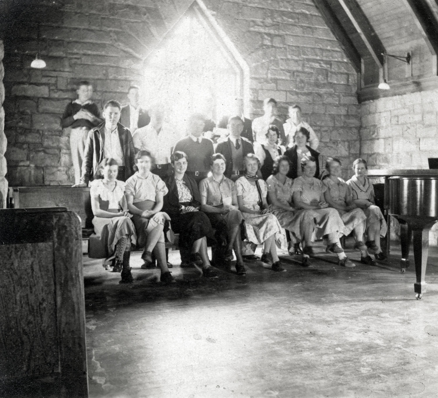 - 10_2463 Choir, 1933. Alonzo Turner, Ben Turner, Winfield Cornett, Harry Brooks, Frena Cooper, Allene Malicoat, Della Turner, Louella Ison, Jewel Rainey, Joan Ayers, Elizabeth Mitchell, Norma Frazier, Sue Hall, Bessie Woodward. [098_IX_students_10_2463_001.jpg]