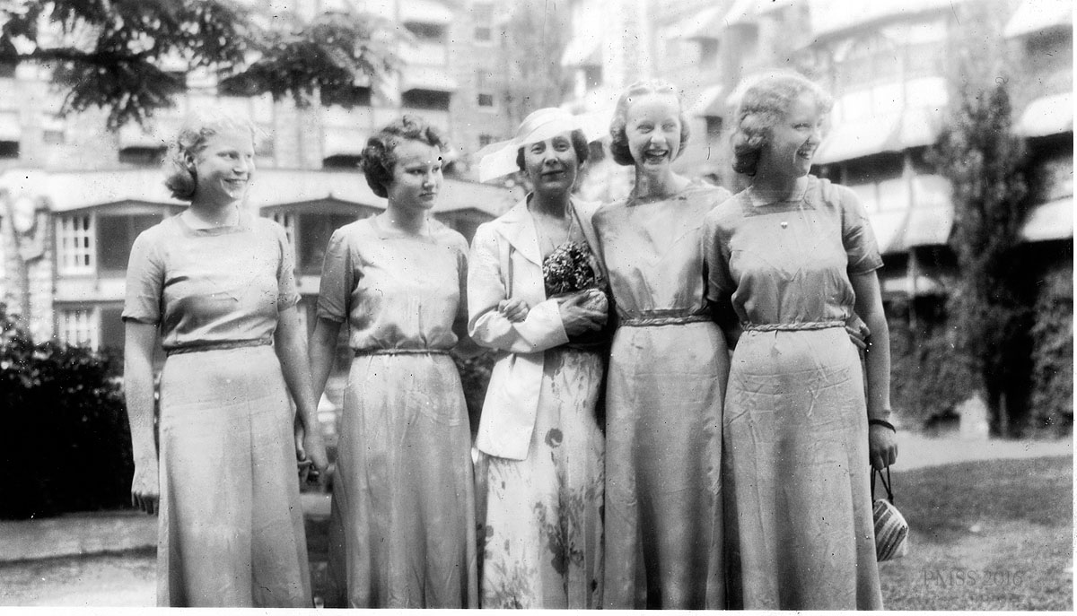 Joan, a talented singer, also performed in several School plays and operettas. As part of the chorus in the Gilbert and Sullivan operetta, H.M.S. Pinafore or the Lass That Loved a Sailor in 1933, she joined her classmates in one of the most memorable of the many performances given at the School. The musical, a favorite during the 1930s, was performed several times at PMSS with a cast that consisted of both staff and students.