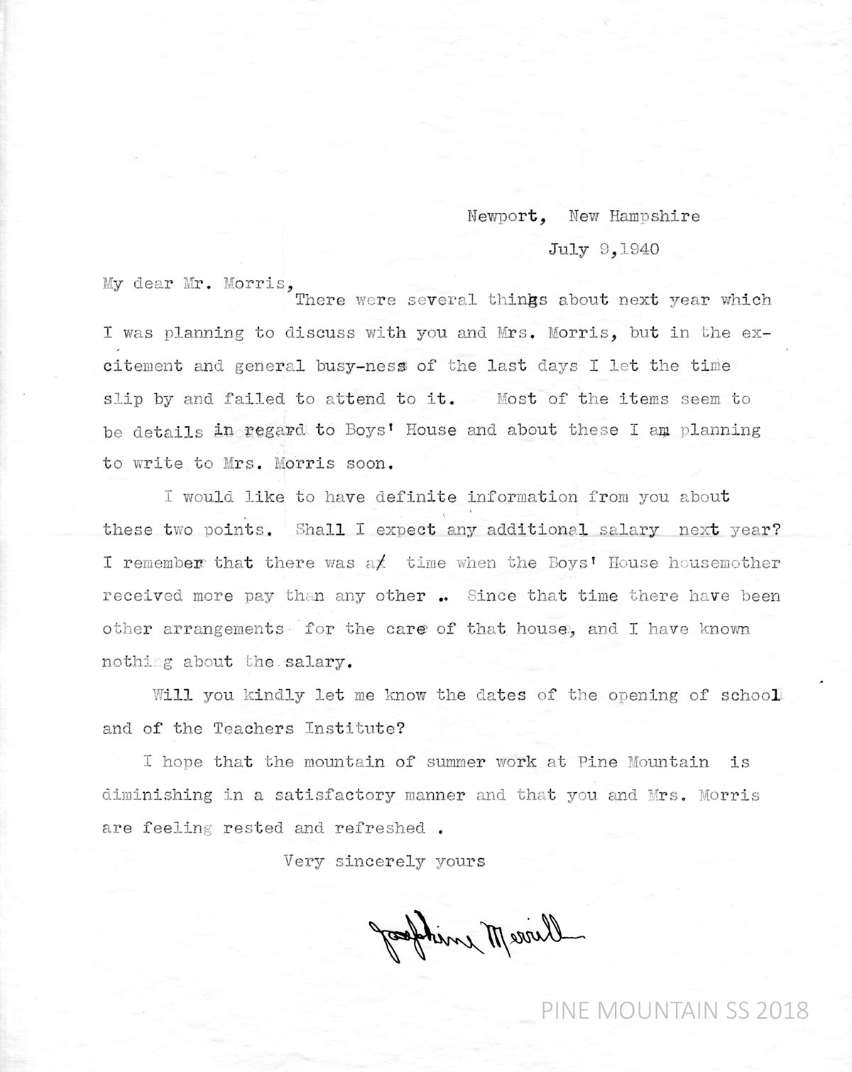 TAGS: Josephine M. Merrill correspondence, Newport NH, Barbara Merrill Bartlett, Glyn A. Morris, Fern Hall Hayes, Guidance Institutes, PMSS teachers, contracts, Boys House, fresh-airers, housemothers, Arthur W. Dodd, William Webb, Mary and Burton Rogers, religion classes, Dorothy Nace, H.R.S. Benjamin