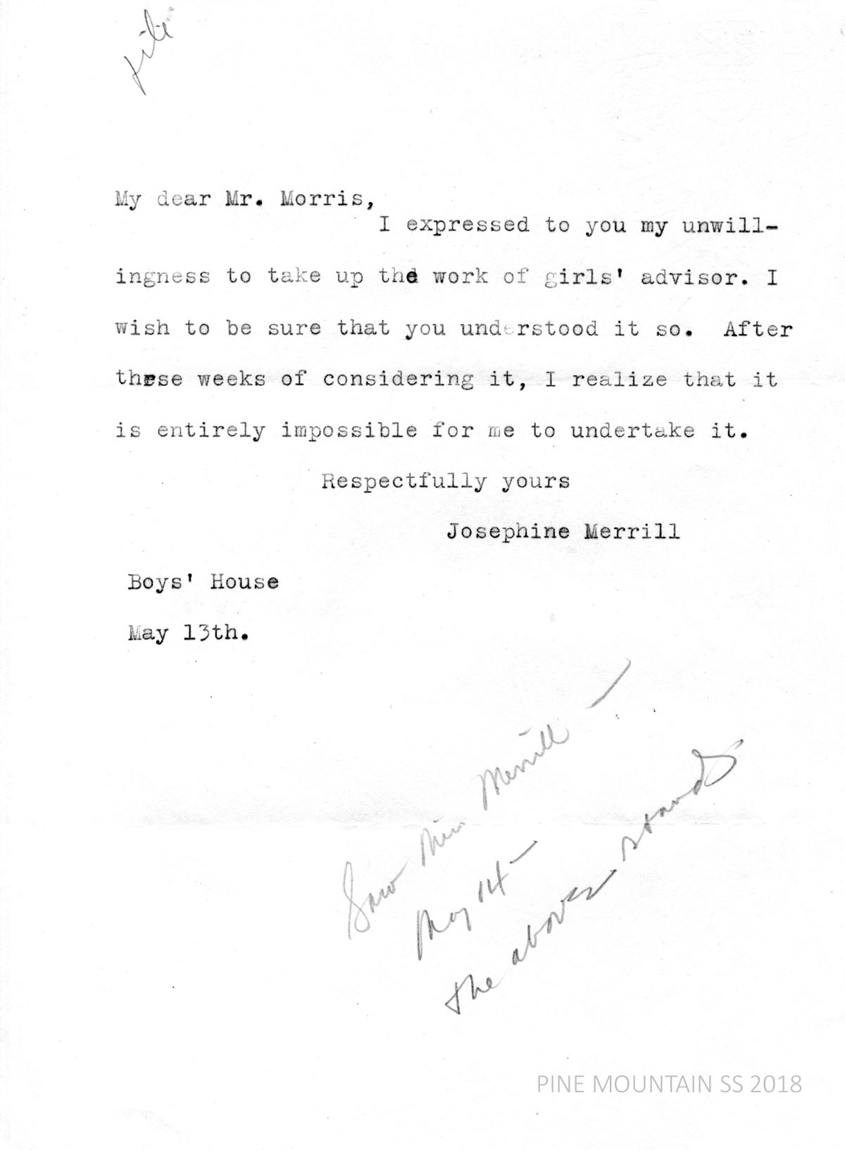 Boy's House (Library) ; JOSEPHINE M. MERRILL Correspondence III