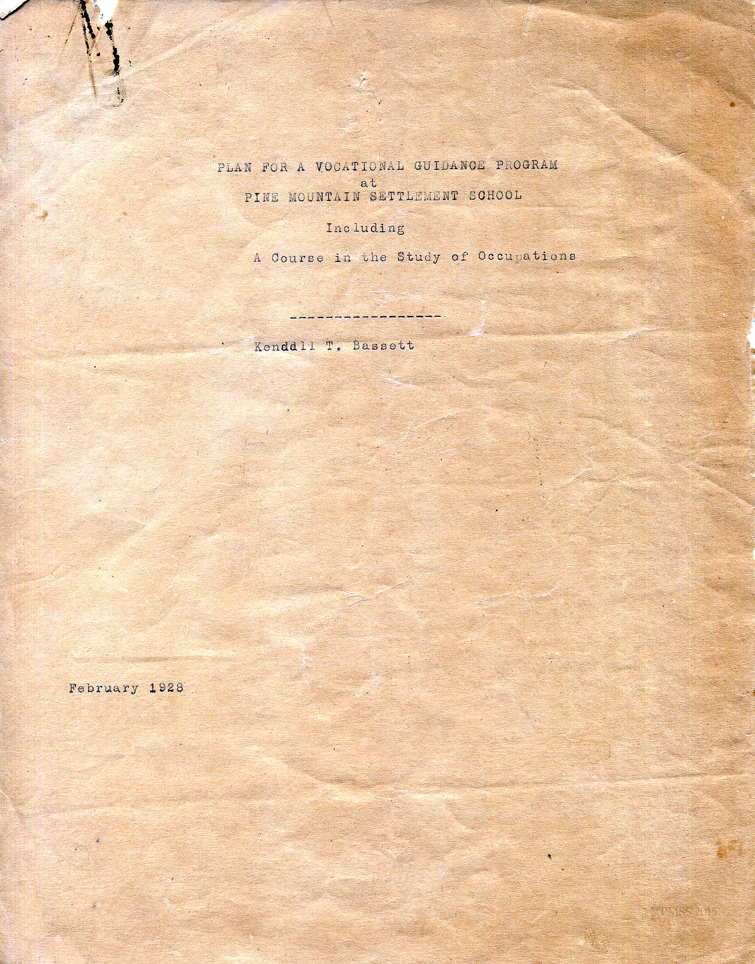 TAGS: Kendall T. Bassett, education, industrial education, home economics, settlement schools, Pine Mountain Settlement School, Harlan County Kentucky, vocational guidance, professional training