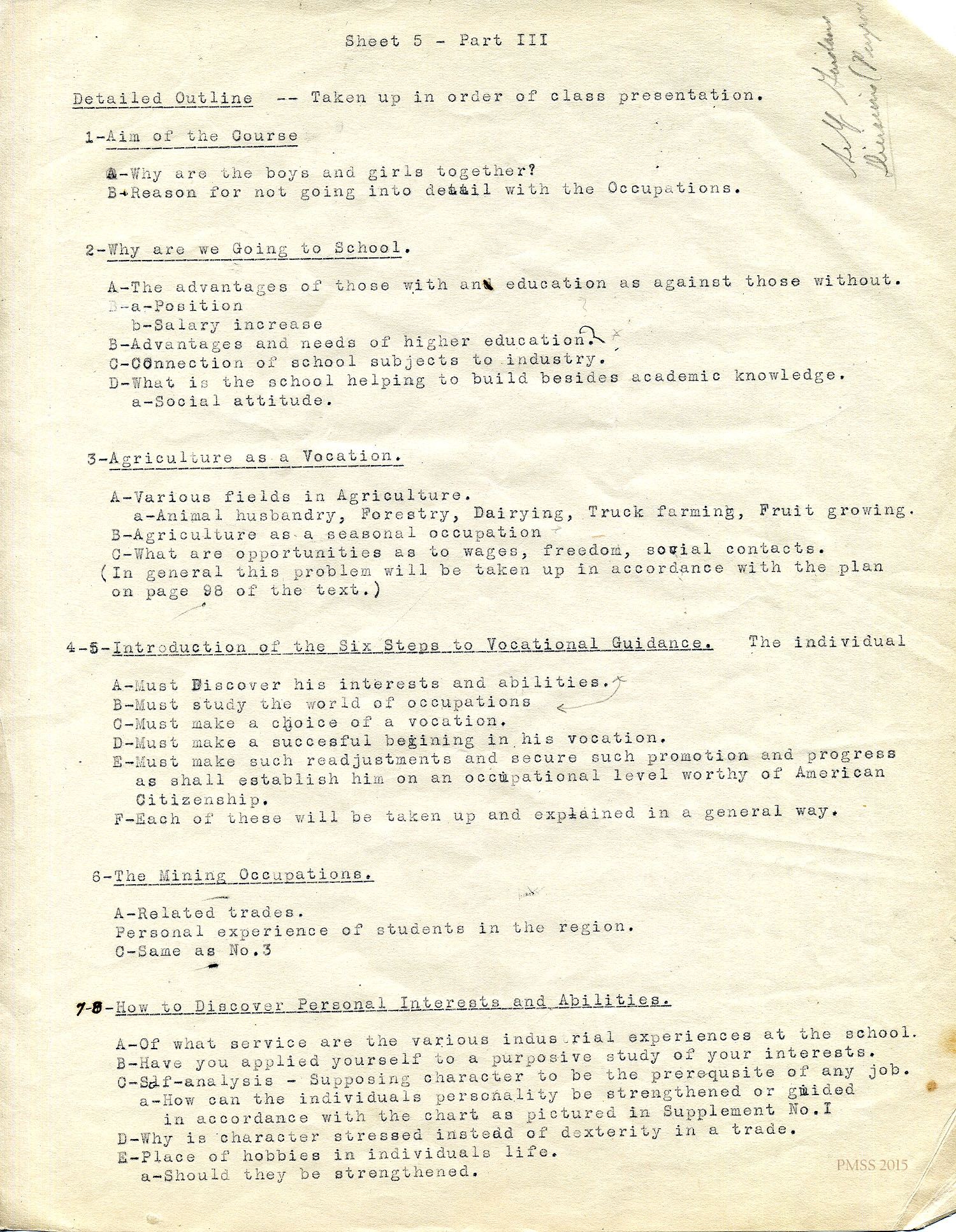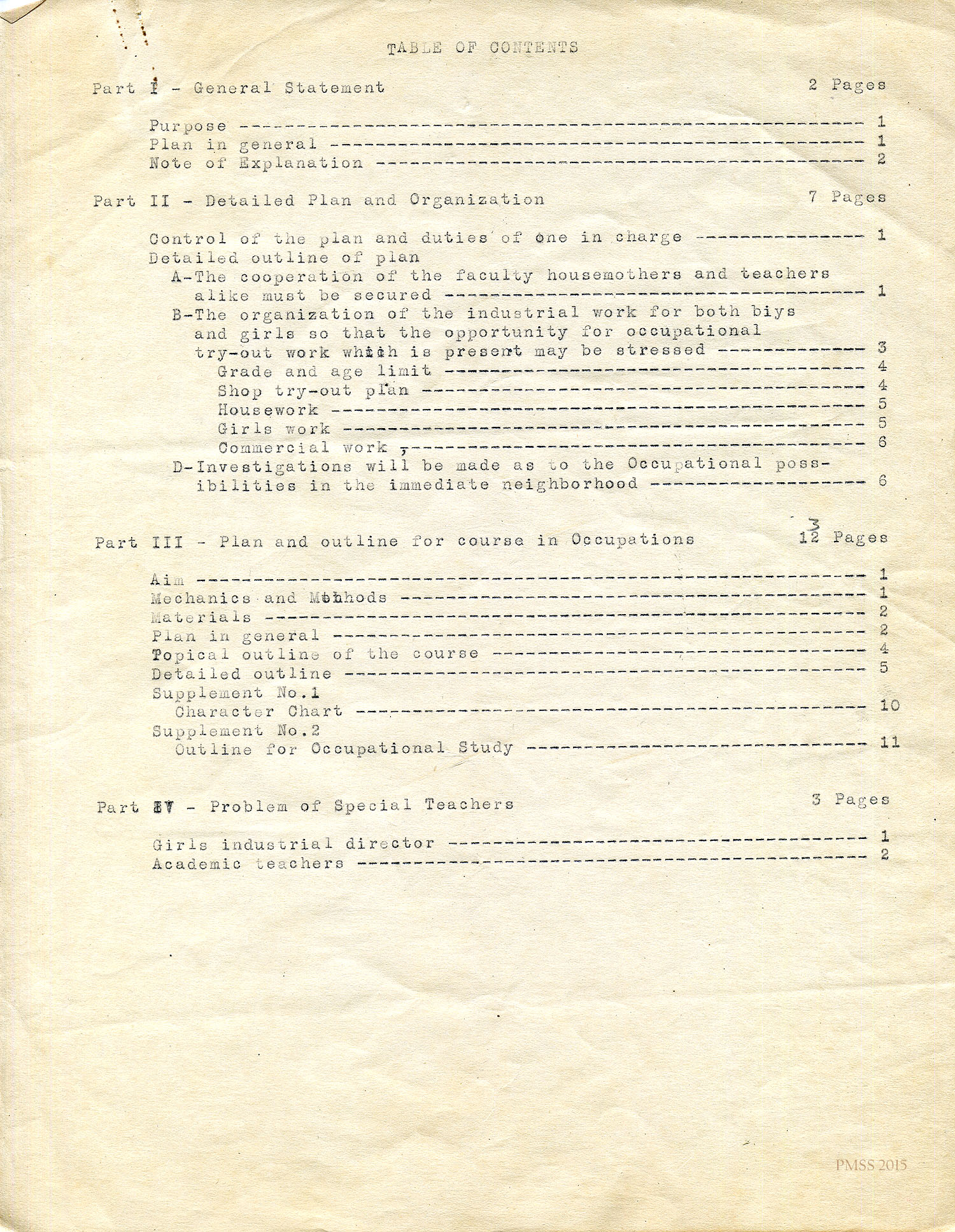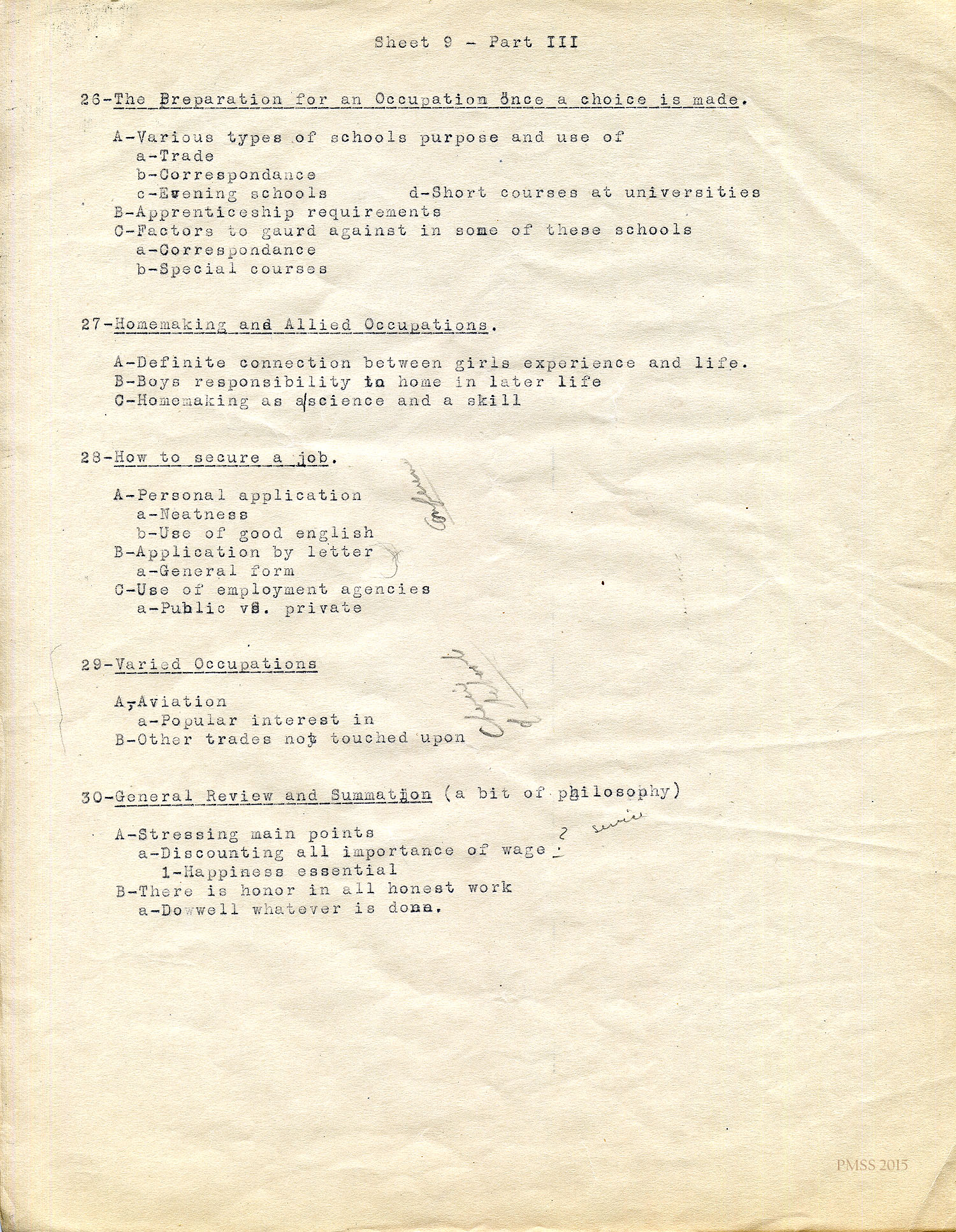 - Kendall Bassett Vocational Guidance Program at PMSS, 1929. bassett_plan_II_007]