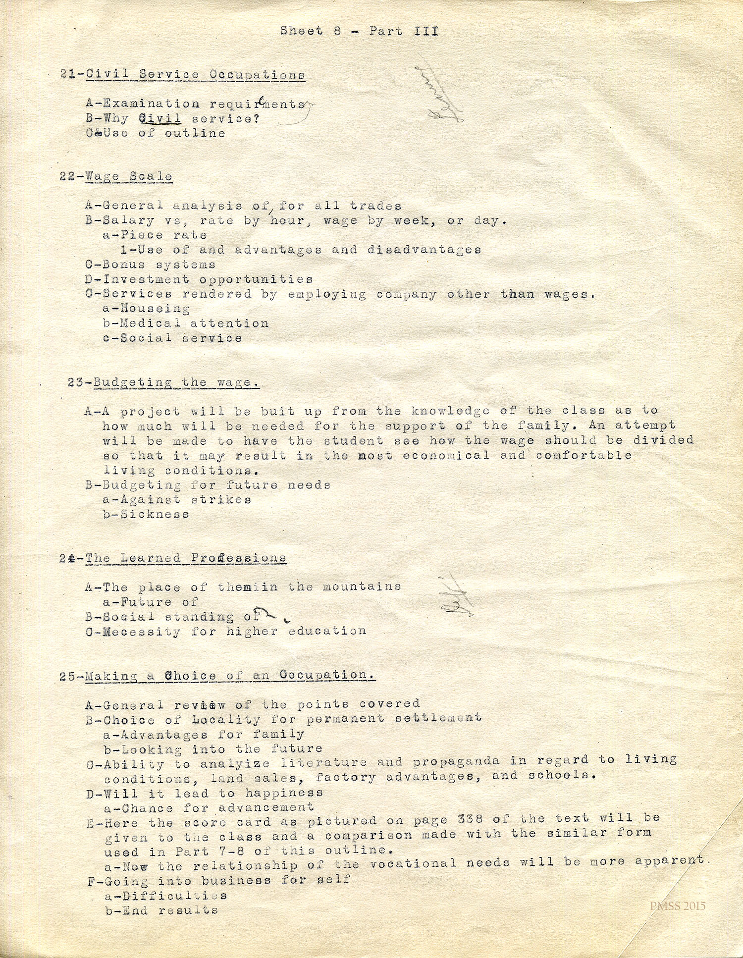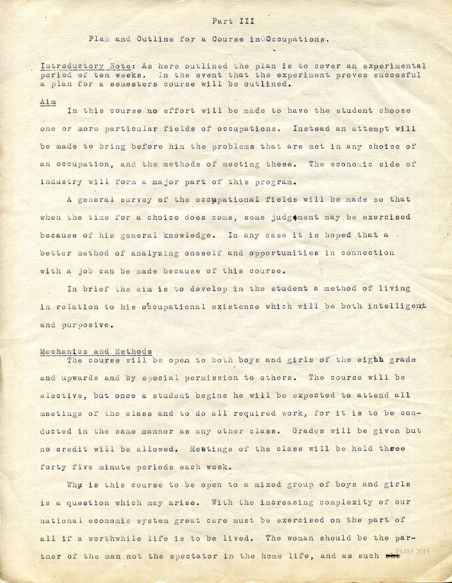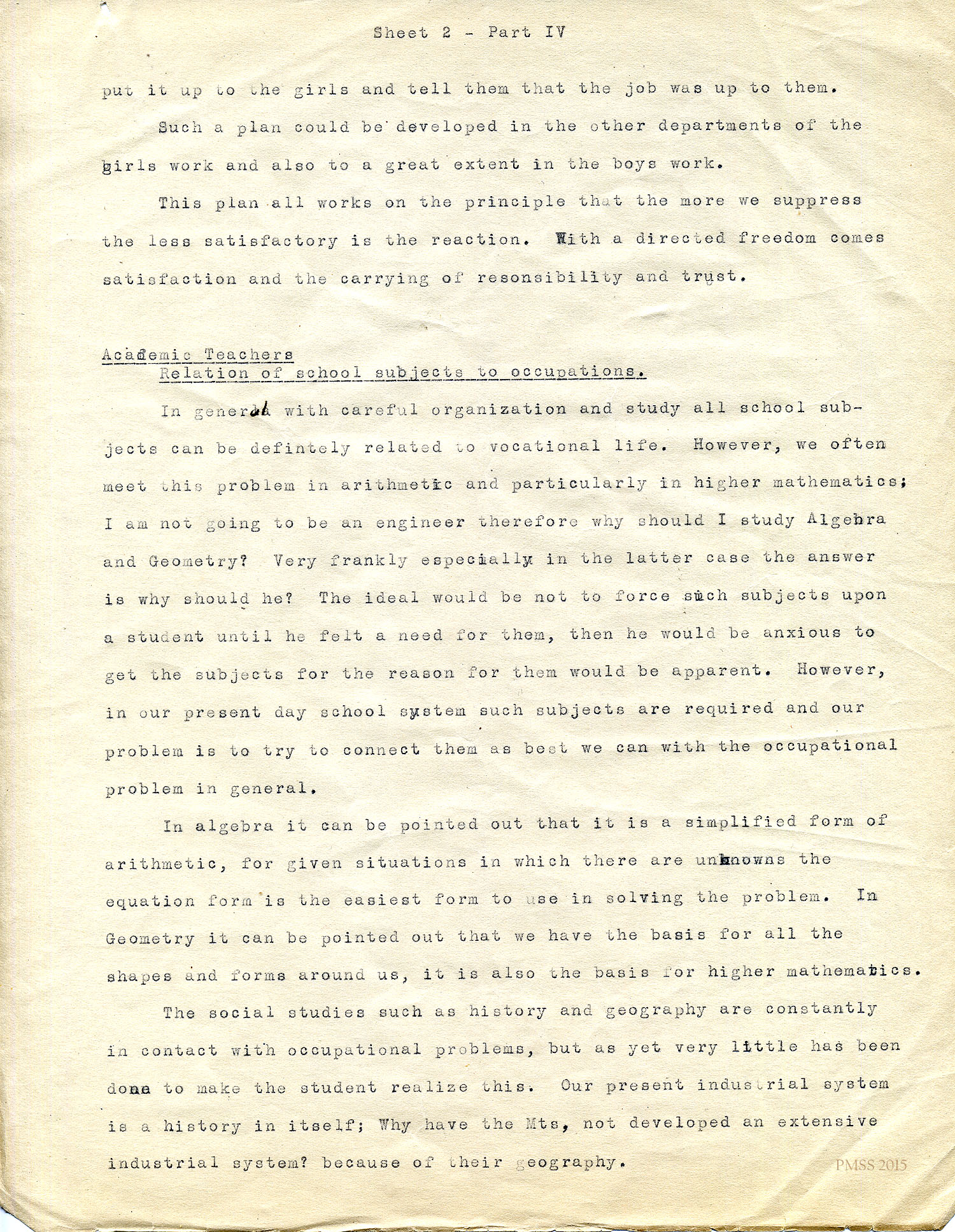 - Kendall Bassett Vocational Guidance Program at PMSS, 1929. bassett_plan_II_007]
