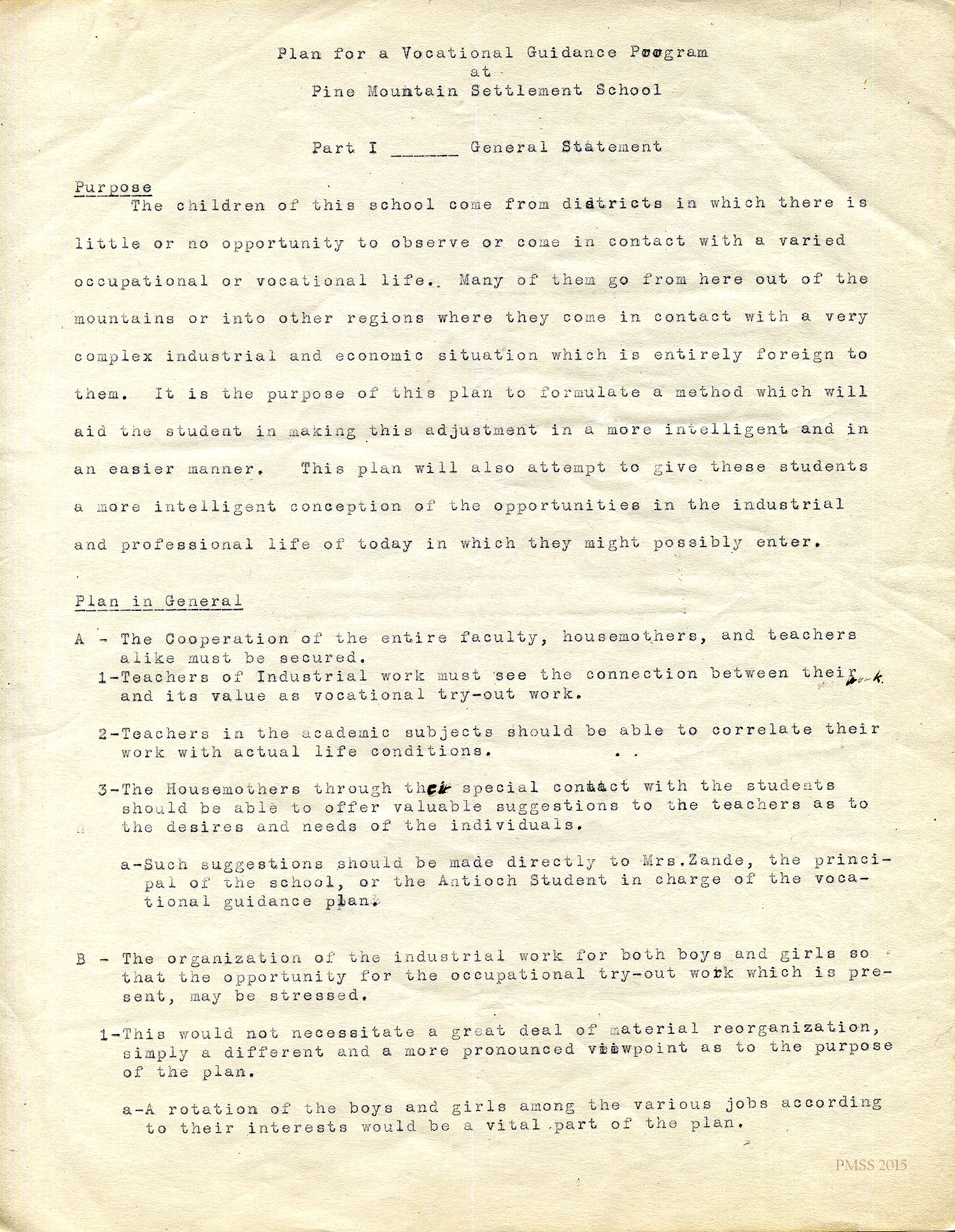 - Kendall Bassett Vocational Guidance Program at PMSS, 1929. [bassett_plan_000_gen_statemnt]