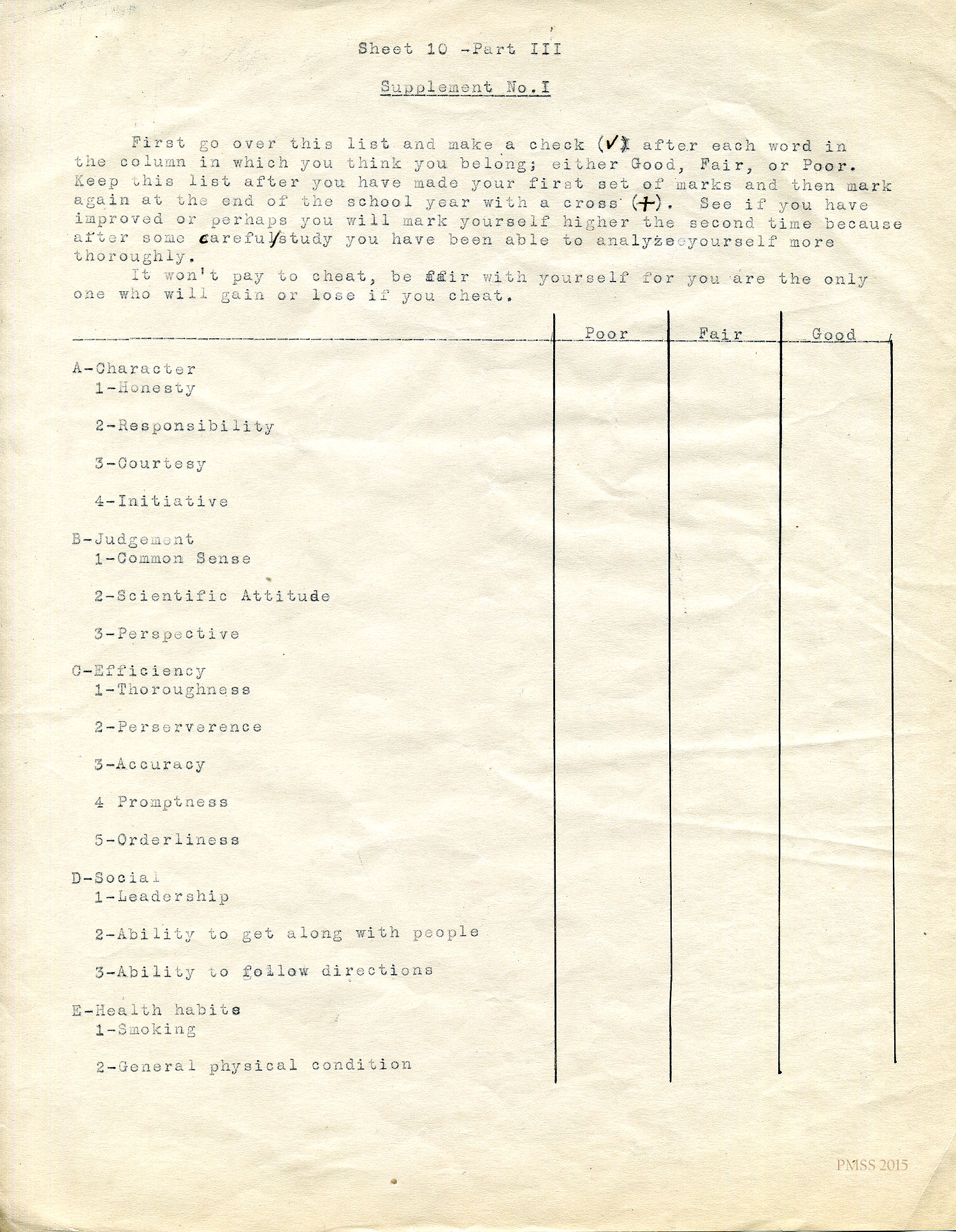 - Kendall Bassett Vocational Guidance Program at PMSS, 1929. [bassett_plan_III_011]