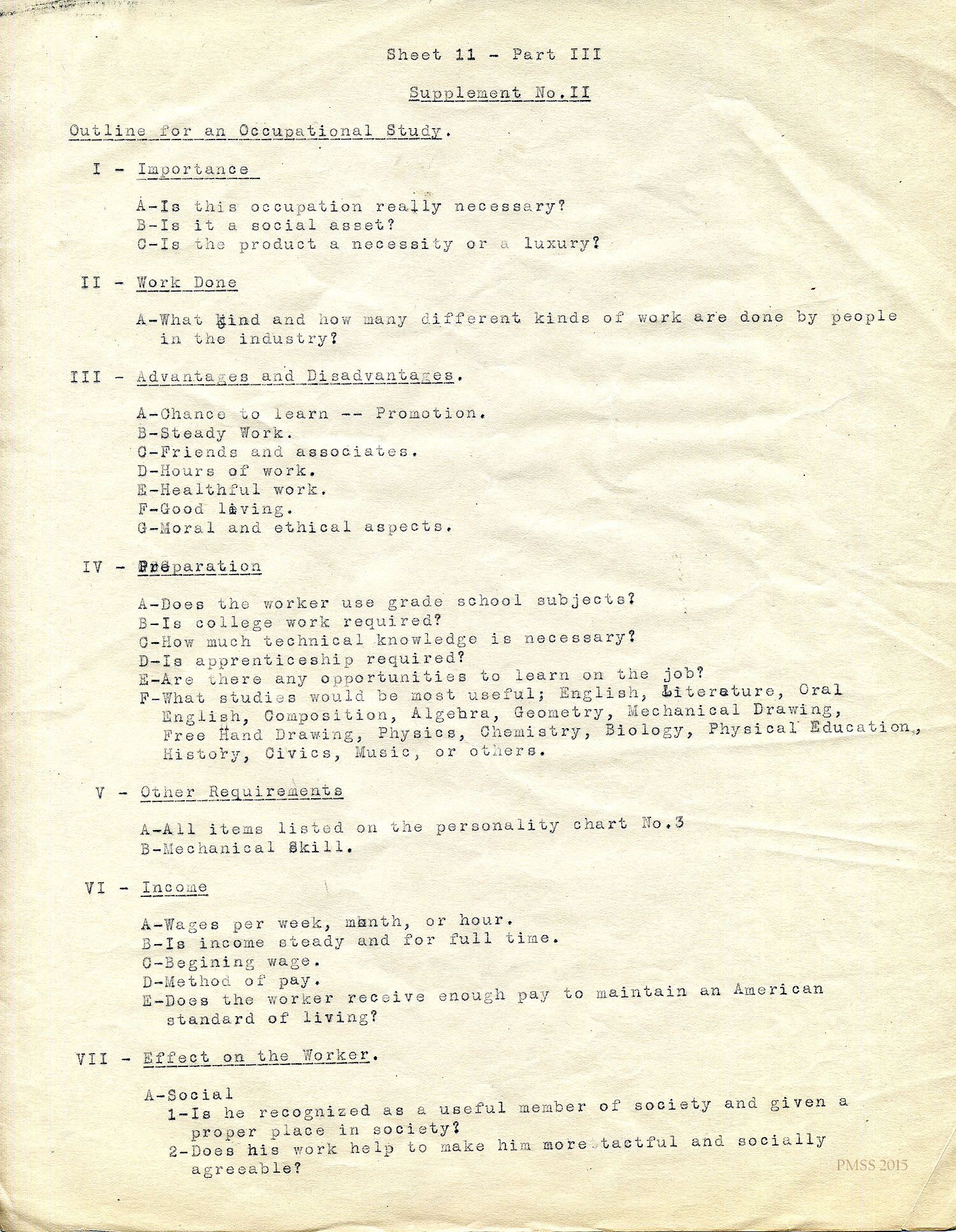 - Kendall Bassett Vocational Guidance Program at PMSS, 1929. [bassett_plan_III_006]