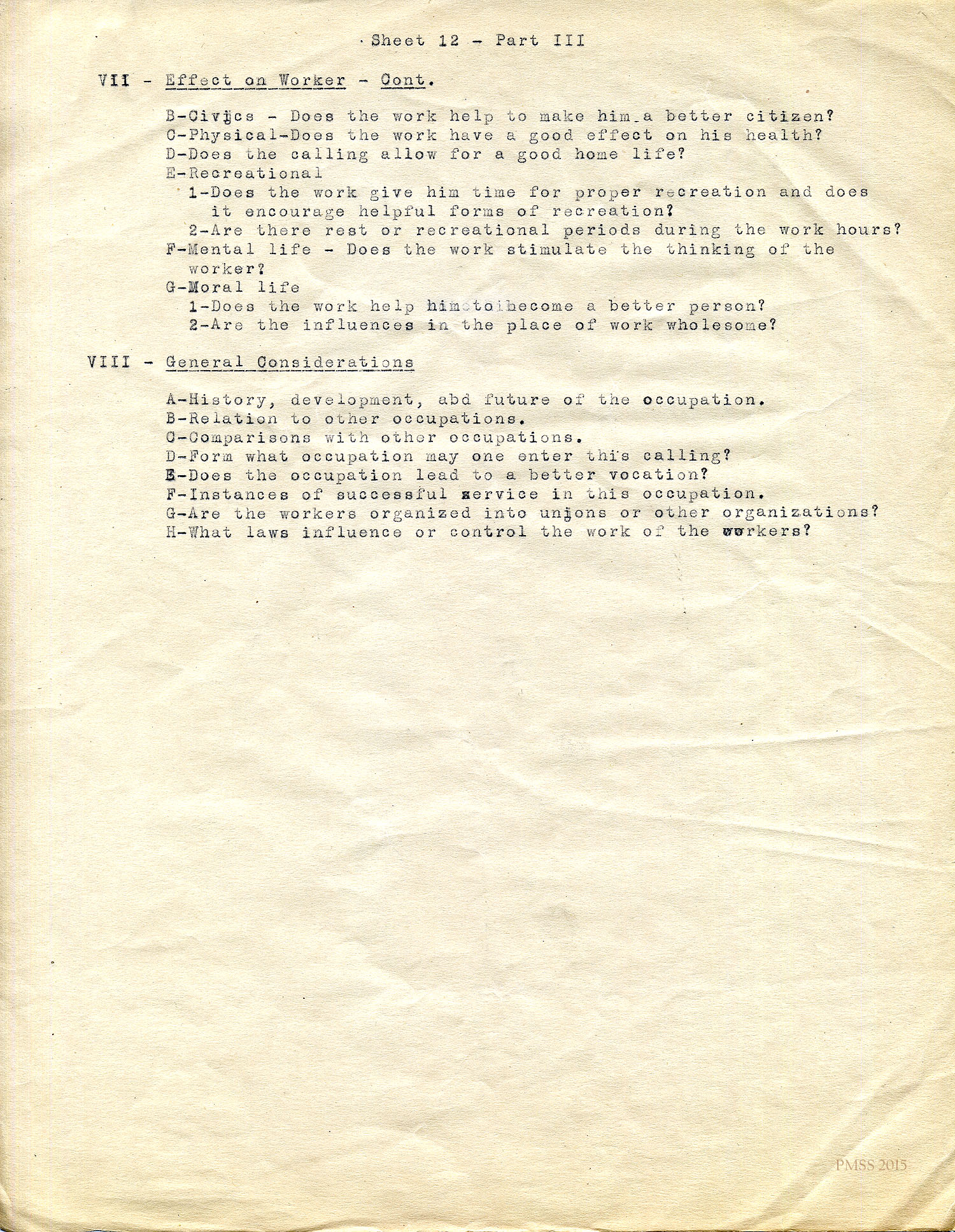 - Kendall Bassett Vocational Guidance Program at PMSS, 1929. [bassett_plan_III_012]