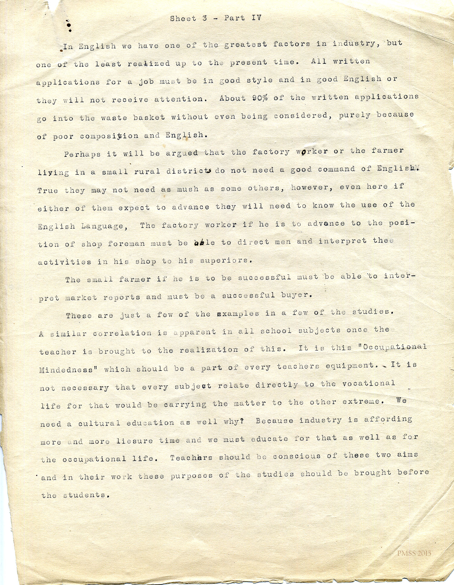 - Kendall Bassett Vocational Guidance Program at PMSS, 1929. [bassett_plan_IV_003]