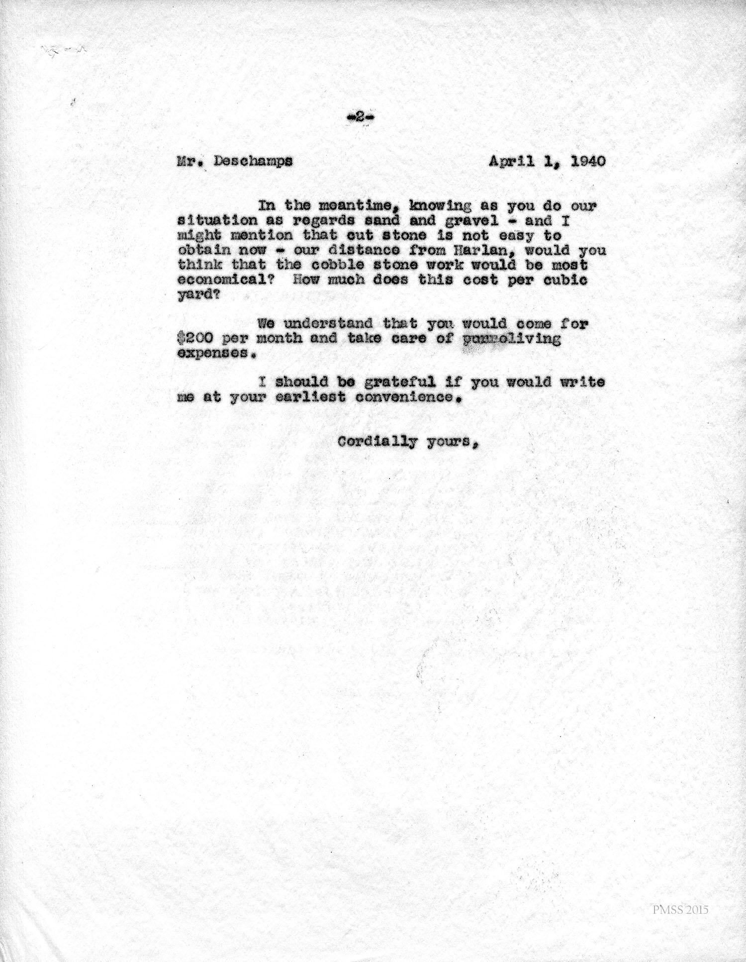 [NOTE: All letters to Deschamps are typewrItten carbon copies for the Office files, therefore usually unsigned. The addressees would have received the signed original letters.]