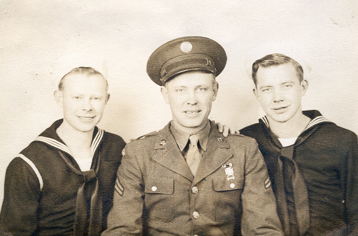 - Scearce Brothers: Bassie, William and Jepp in their military uniforms. [pmss_metcalf_brothers_jeppnavy.jpg]