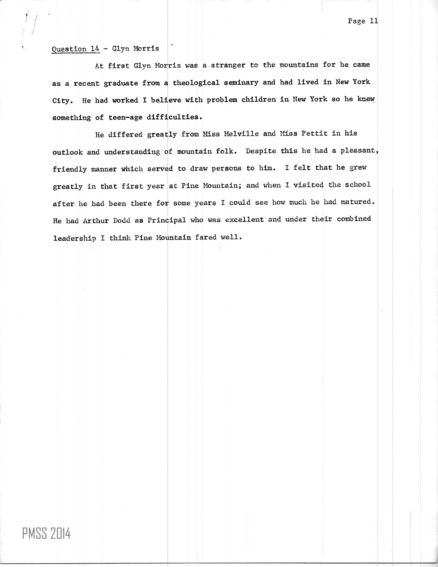 TAGS: Margaret Motter, Recollections of Pine Mountain, Angela Melville, Katherine Pettit, Ethel de Long Zande, school principals, curriculum, grading and evaluations, Antioch College Co-ops at PMSS, folk music, dancing, community, teachers, Glyn Morris