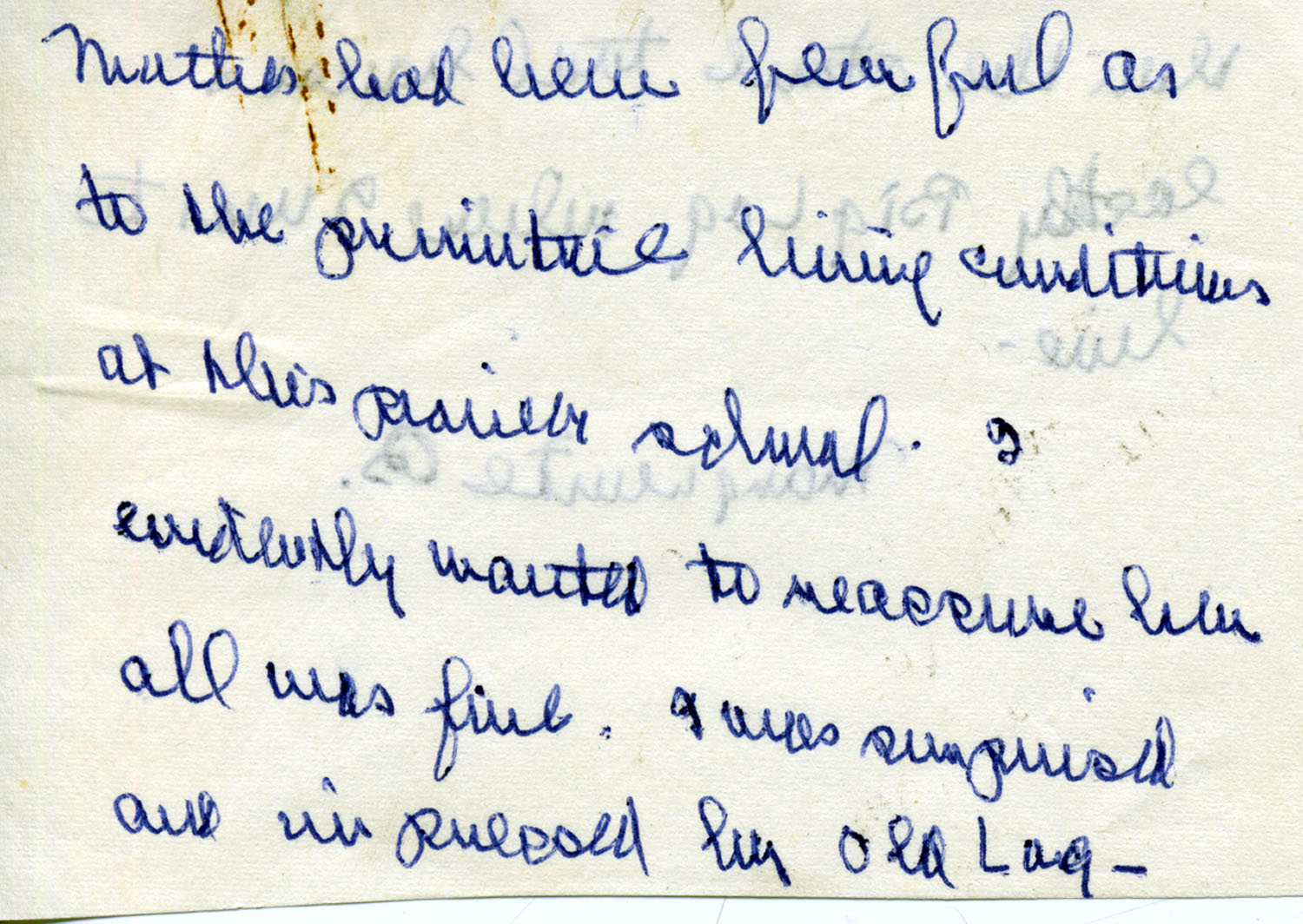MBB Note: “As to the primitive living conditions…” [images 001 & 002]