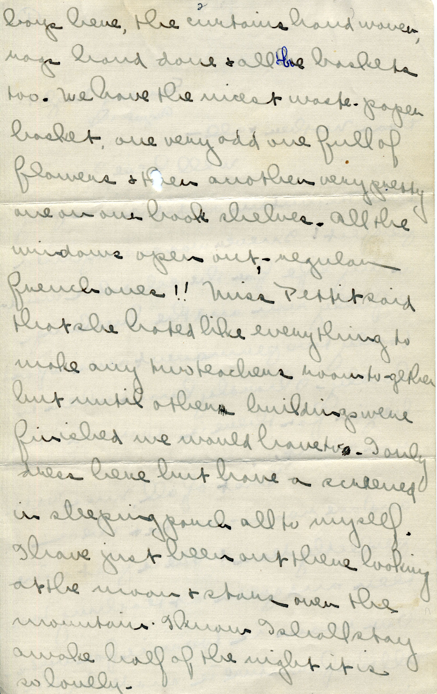 I wish you could be here tonight to see this new moon over the mountains. It is a perfect picture. The whole country is lovely always but on moonlight nights it is more than lovely!