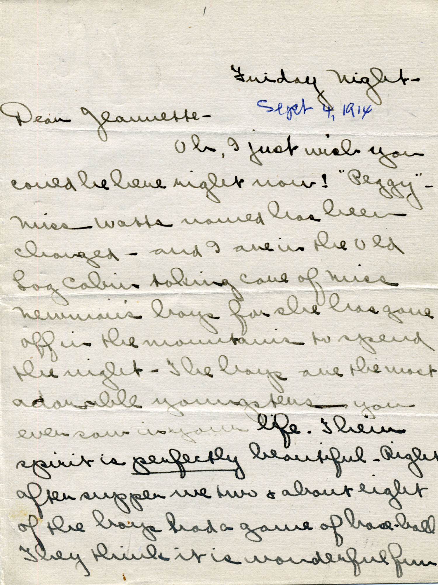 2. 1914 LETTER 2 – Friday night, September 4 “Dear Jeanette — Oh, I just wish you could be here right now! …” [images 022-024]