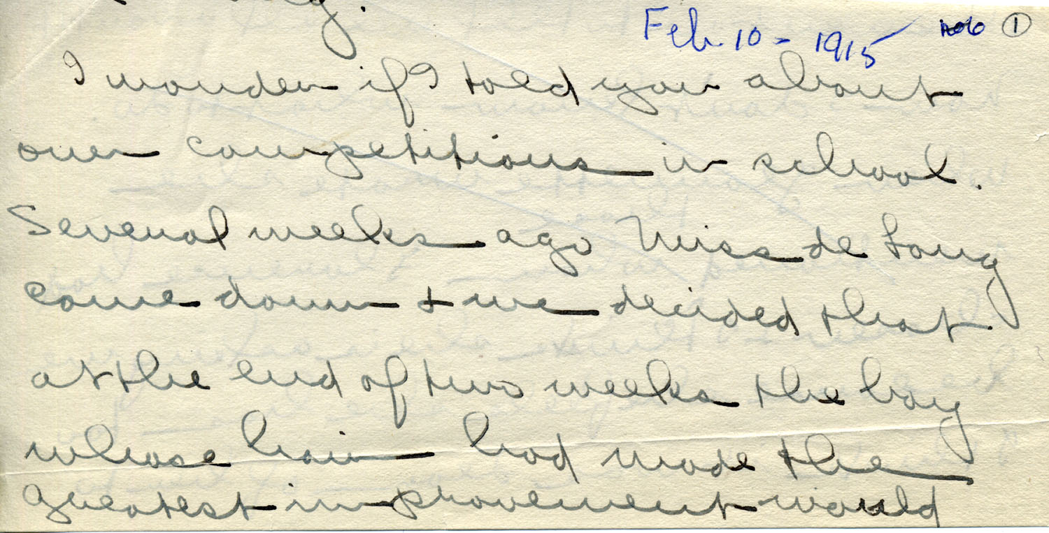 2. 1915 LETTER 2 – February 10, 1915 – “Dear Family — I wonder if I told you about our competitions” [images 004-011]