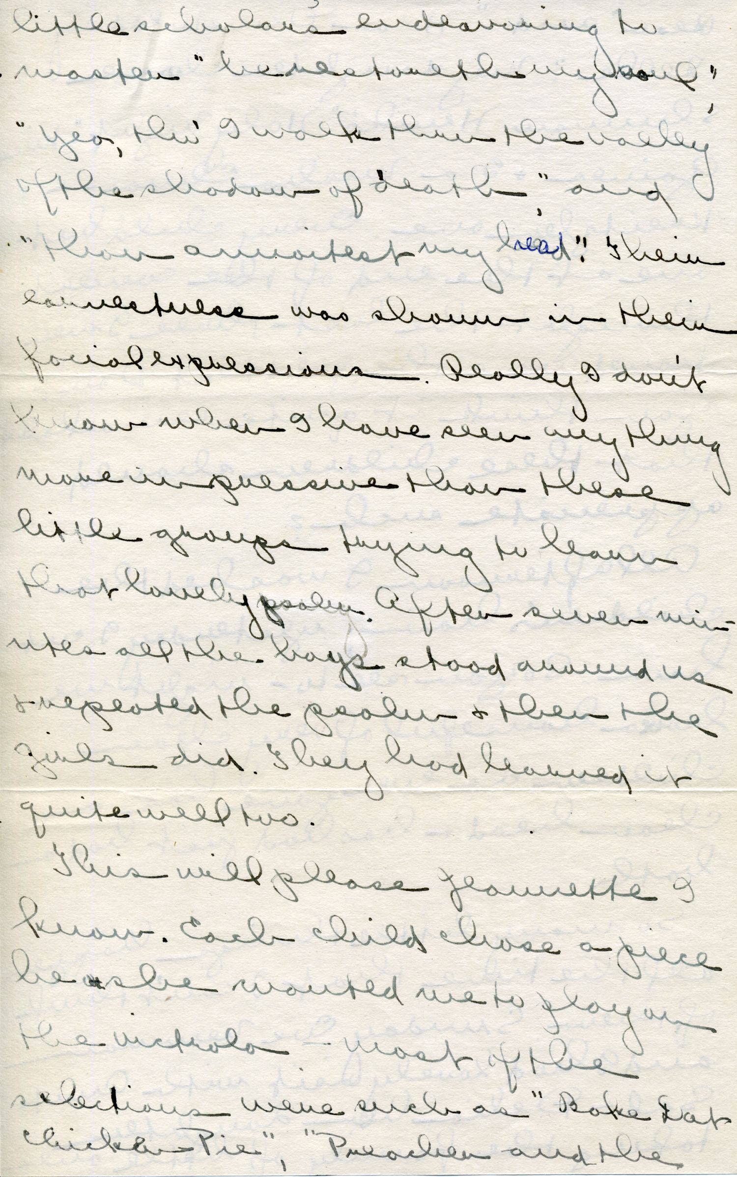 Last night we had a nice party here for Dot Philips who left this morning. About thirty-two were there. We played “Musical Chairs”, “Spin the Plate”, “Wink” and such games. Served a fruit drink – concoction of anything we could lay our hands on, and a lovely big cake which had “Dot” written across the top of it. Afterwards we got them to singing some of the ballads for we want so to start a ballad club. All that afternoon I had been working with Uncle William.