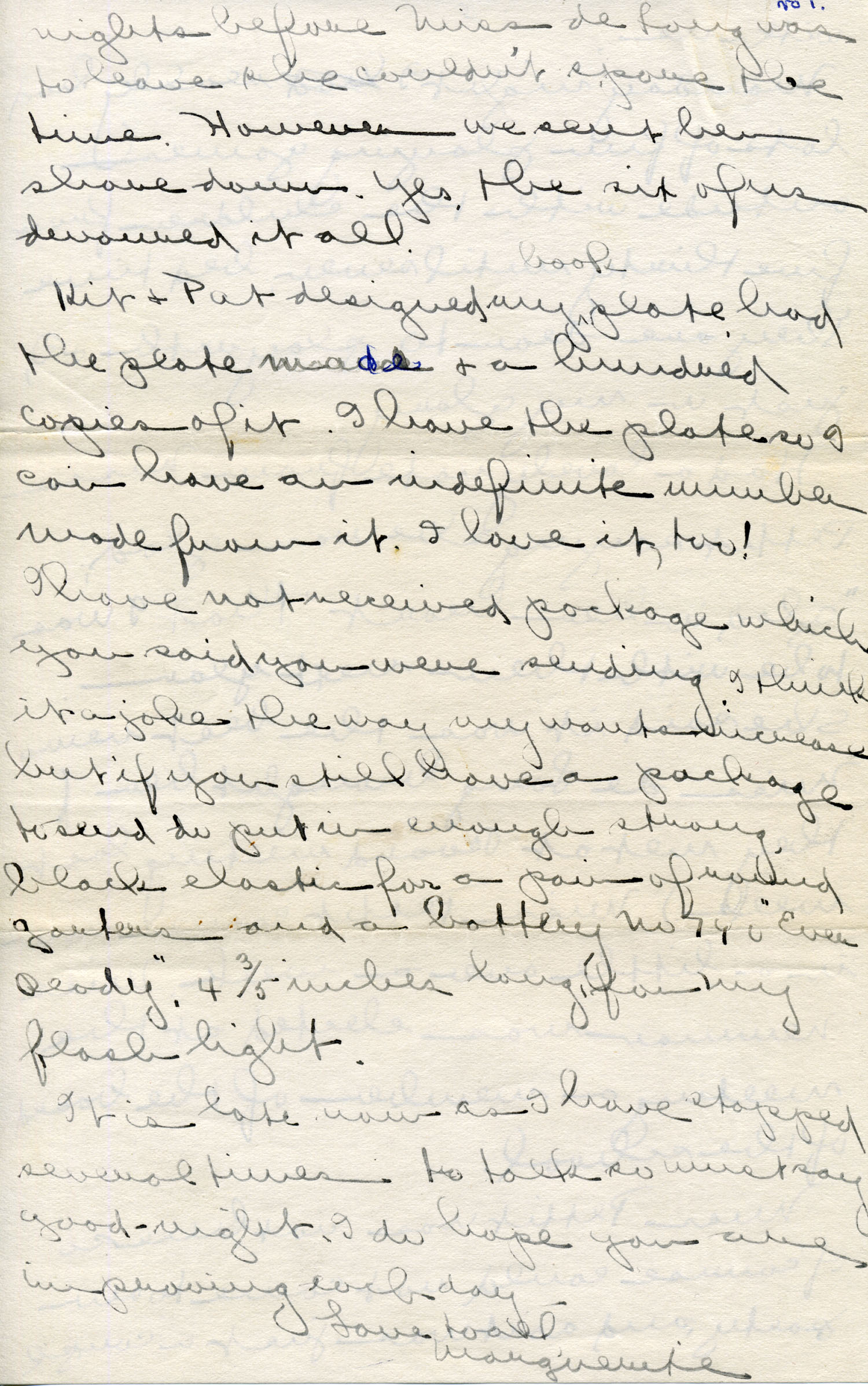 Was so glad to hear about Jeanette. Have many letters to write so must say goodbye. No mention if they would send me a comb and my old rain hat.