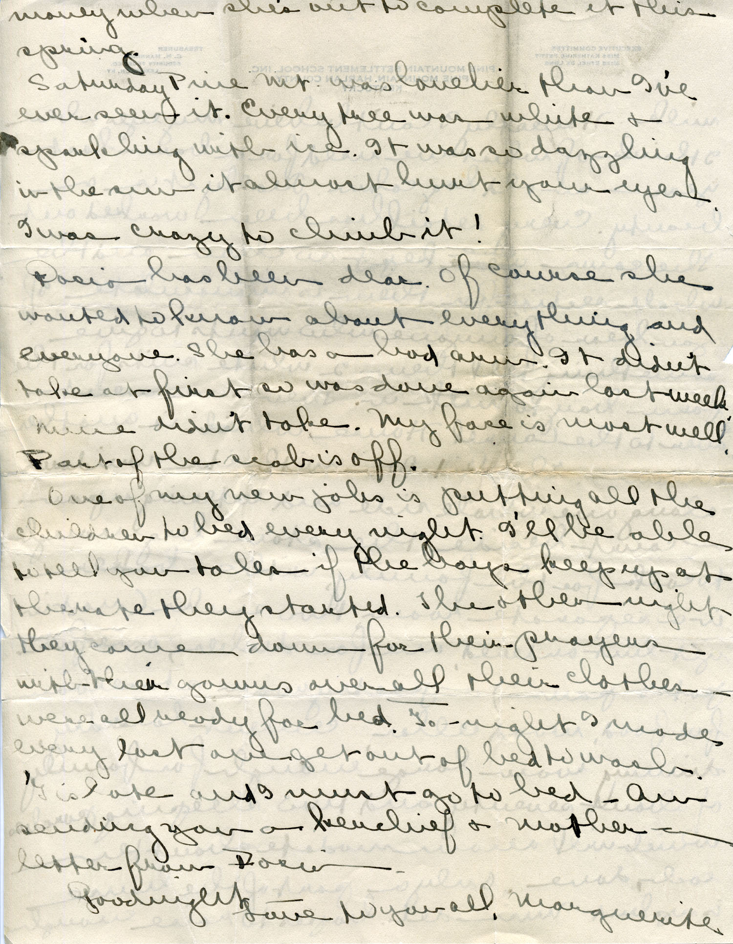 TAGS: Marguerite Butler Letters 1915, students, Aunt Sal & Uncle William Creech, Katherine Pettit, maple sugar, Pole House, Ruth Gaines, Luigi Zande, pioneers, spinning, forest fires, Convention of Southern Workers, Southern Industrial Educational Board, Evelyn Wells, Celia Cathcart, baptizing, Far House, Sunday School, dairy, Laurel House, Edith Canterbury, playground and playhouse, Farmers Meeting, Columbus Creech, Christmas activities, grippe