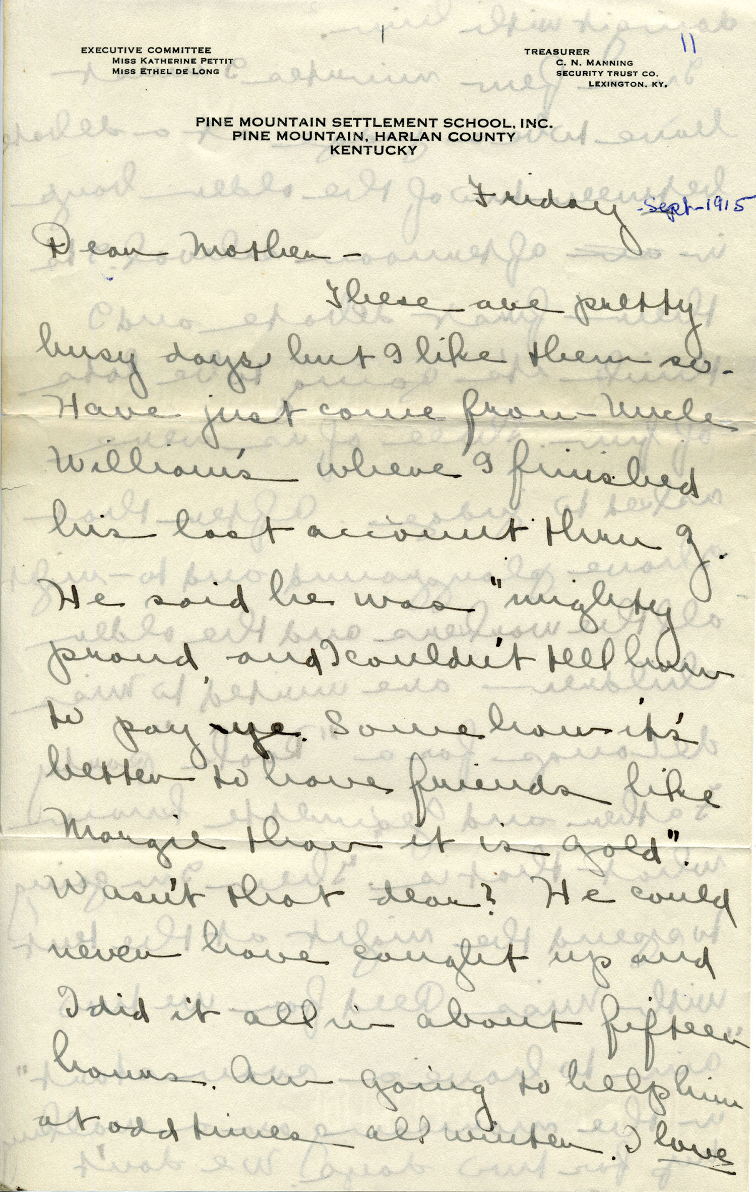 September, Friday, 1915 – “Dear Mother — These are pretty busy days, but I like them so….” [images 044-052]